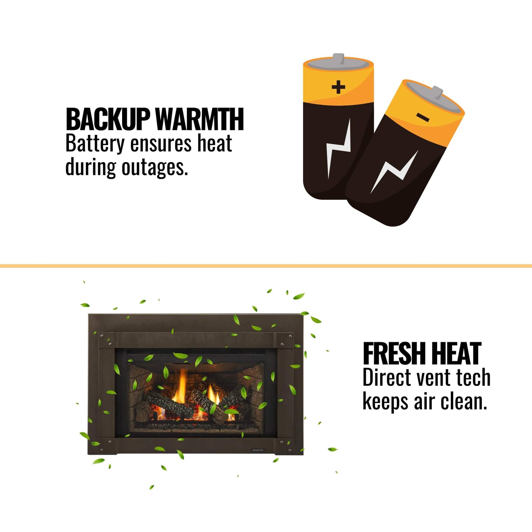 Transform your living space with the Majestic Trilliant Series Direct Vent Gas Fireplace Insert (TRILLIANT35IN)—the clean, powerful warmth you want without the mess of wood or soot. Available in 35", 25", and 30" sizes, it’s the upgrade your home deserves (and your socks will thank you).