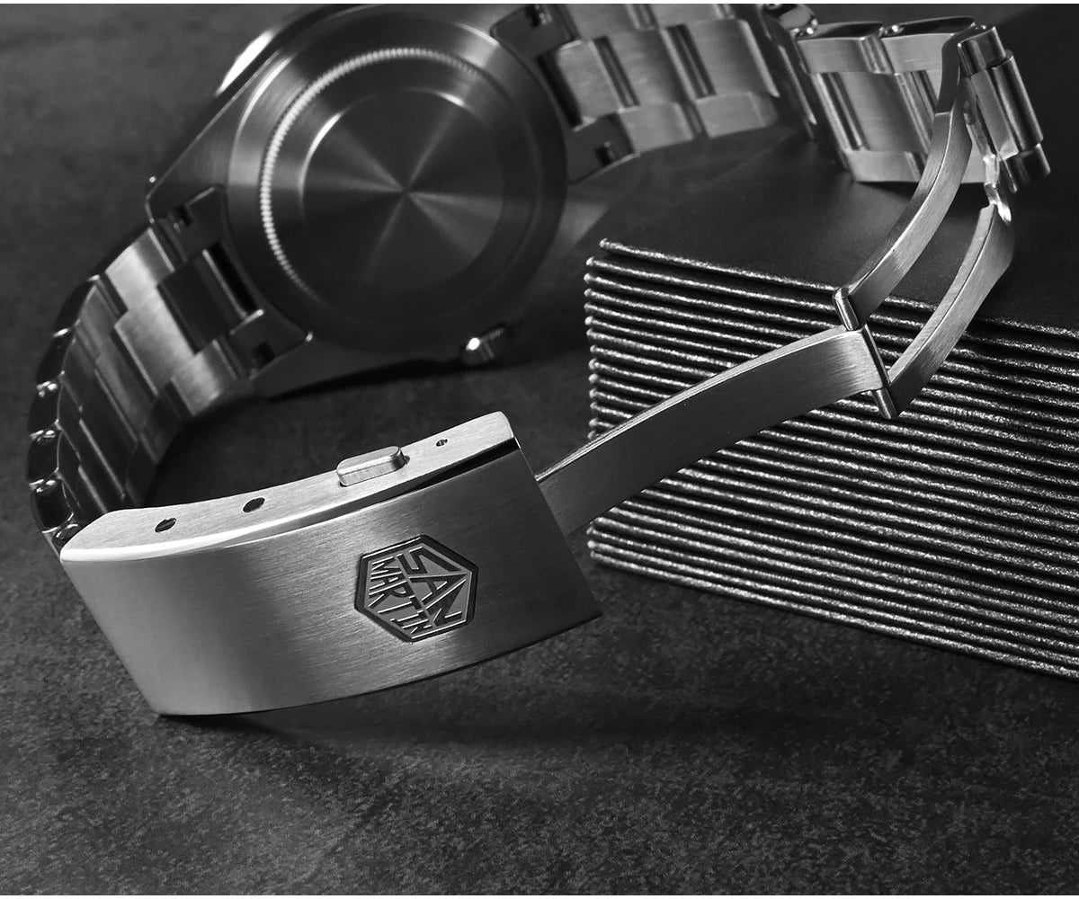 What makes this San Martin stand out? The combination of 316L stainless steel with a brushed-and-polished bracelet, the circular satin case back, and the AR-coated sapphire crystal delivers a premium look and feel without the premium-price drama. If you want a trustworthy diver that looks as serious about details as you are, SN0006-G-B is a solid choice.