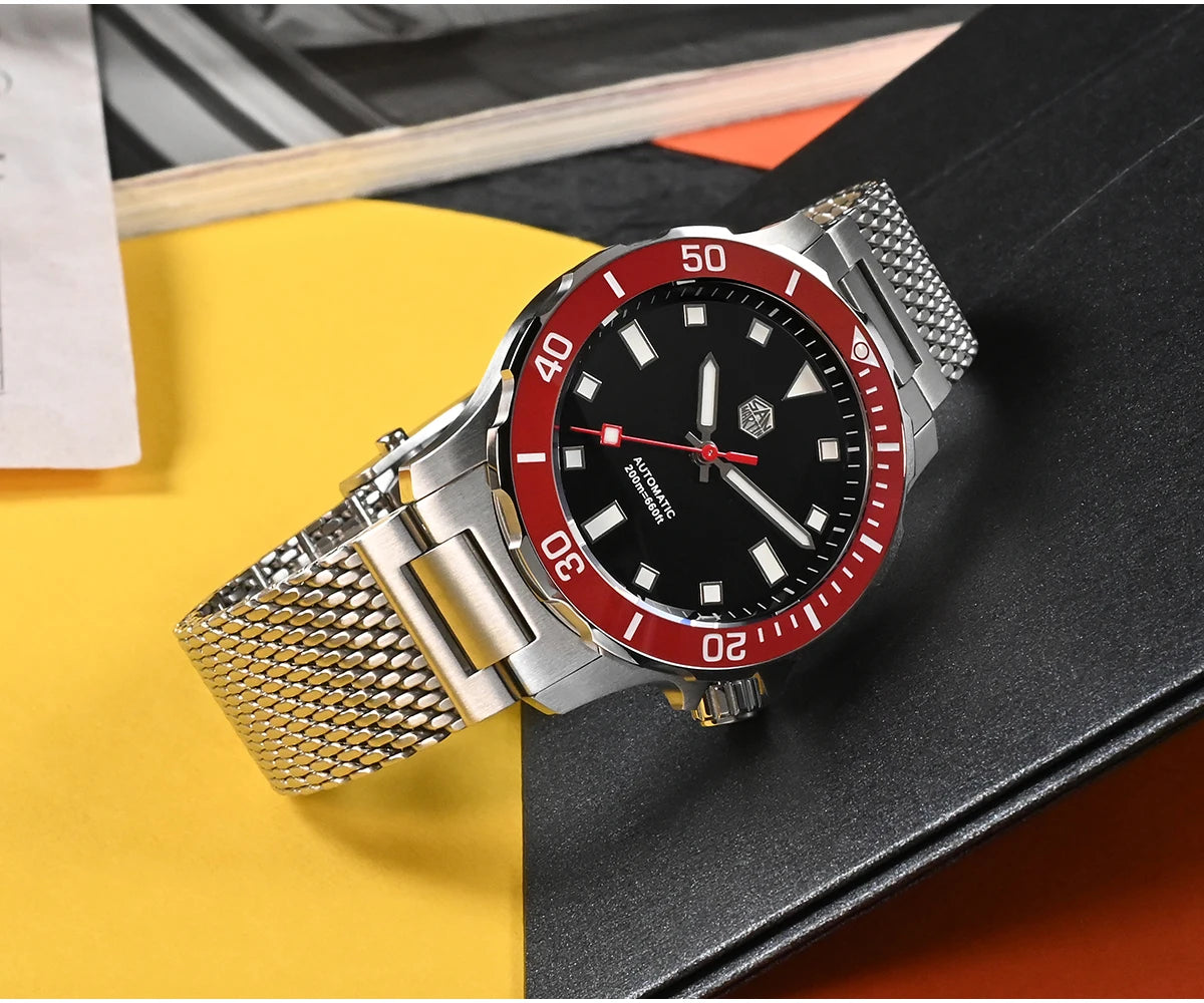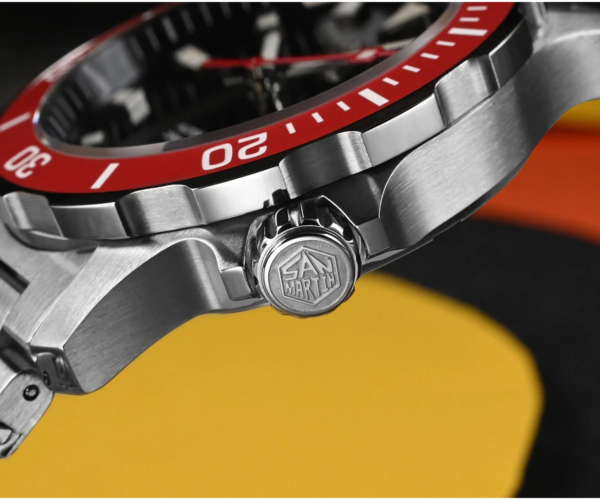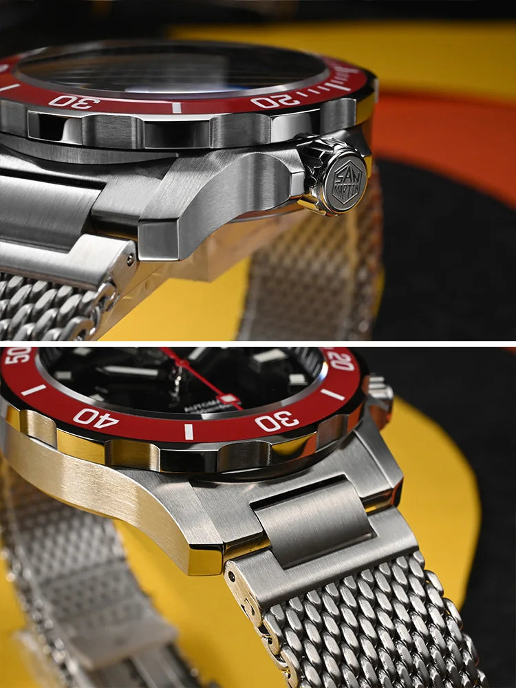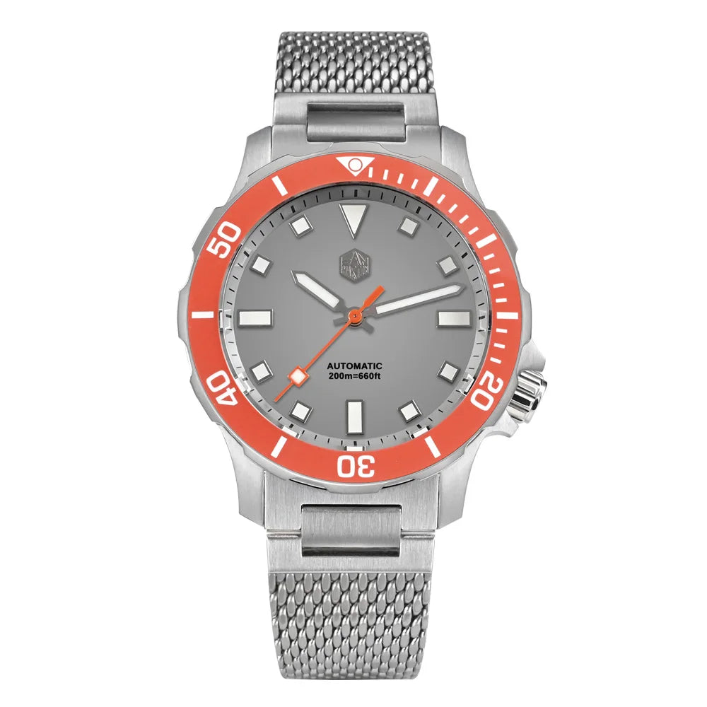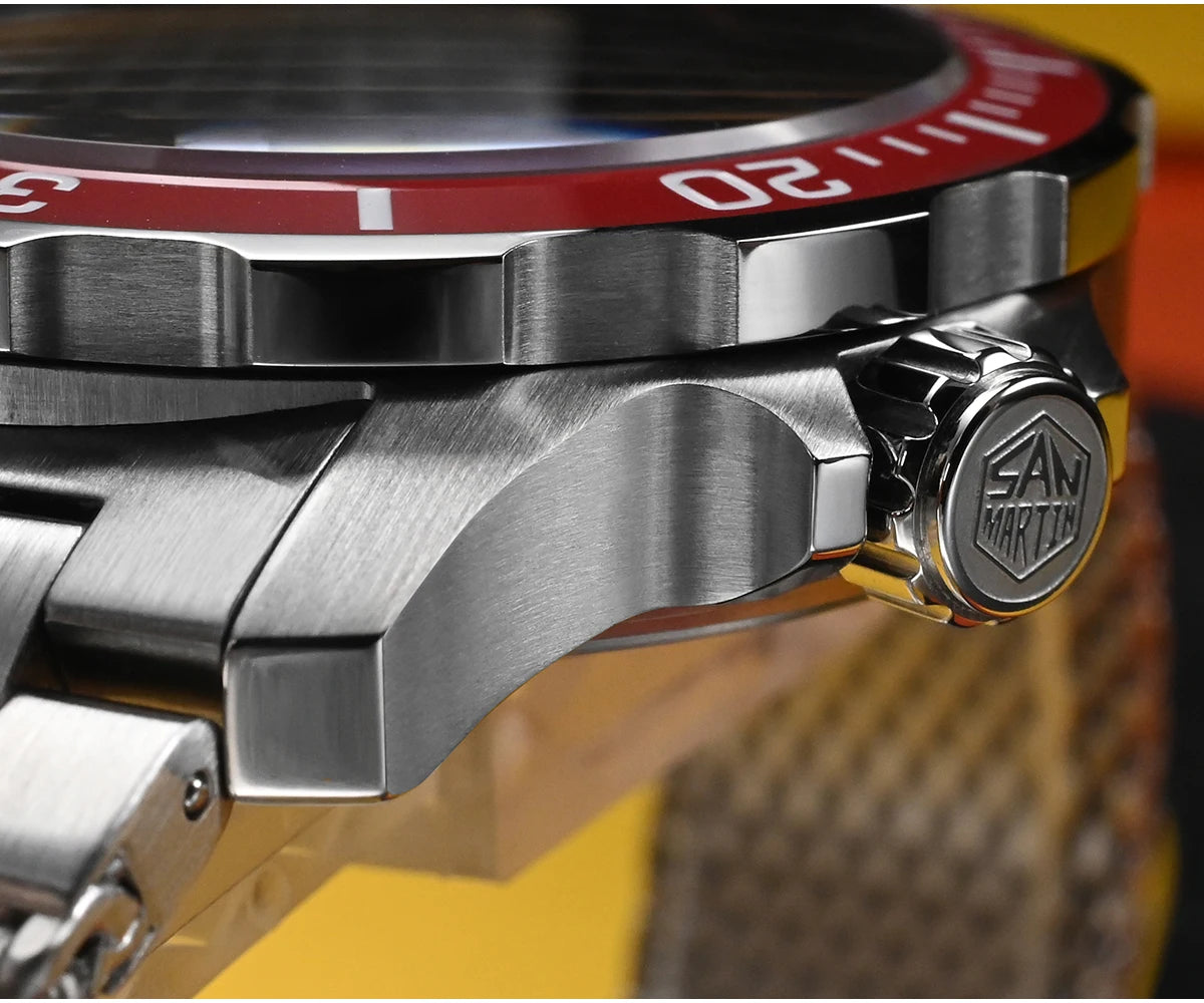 The San Martin Original Design Diver 39.5mm V2 is a rugged automatic diver watch built for serious swimmers and daily explorers alike. With a 200m water rating, a scratch-resistant sapphire crystal, and a sleek Milanese-style stainless steel bracelet, it’s not here to win a runway—it's here to win your confidence in the water and in the boardroom.