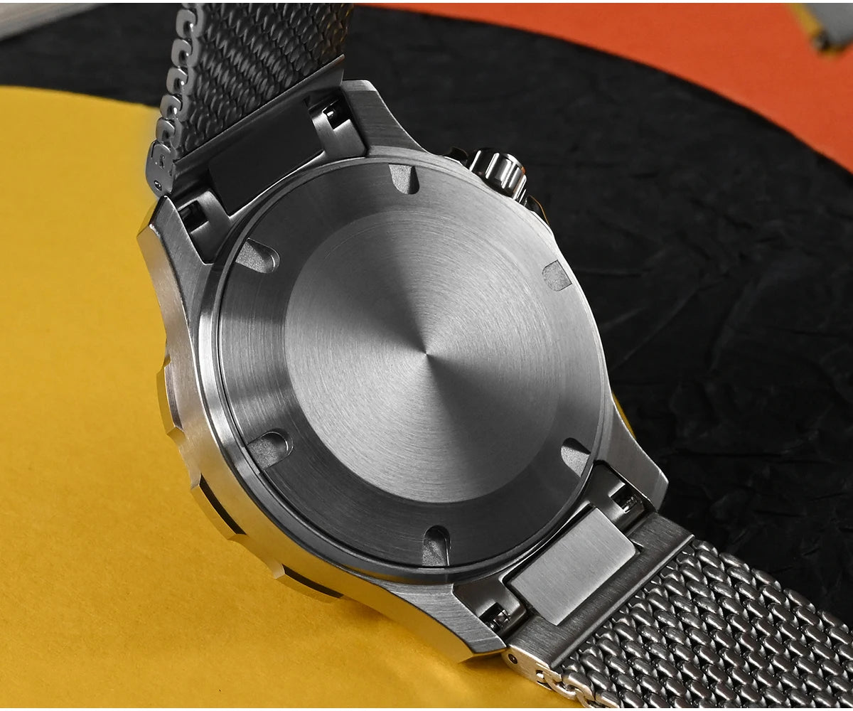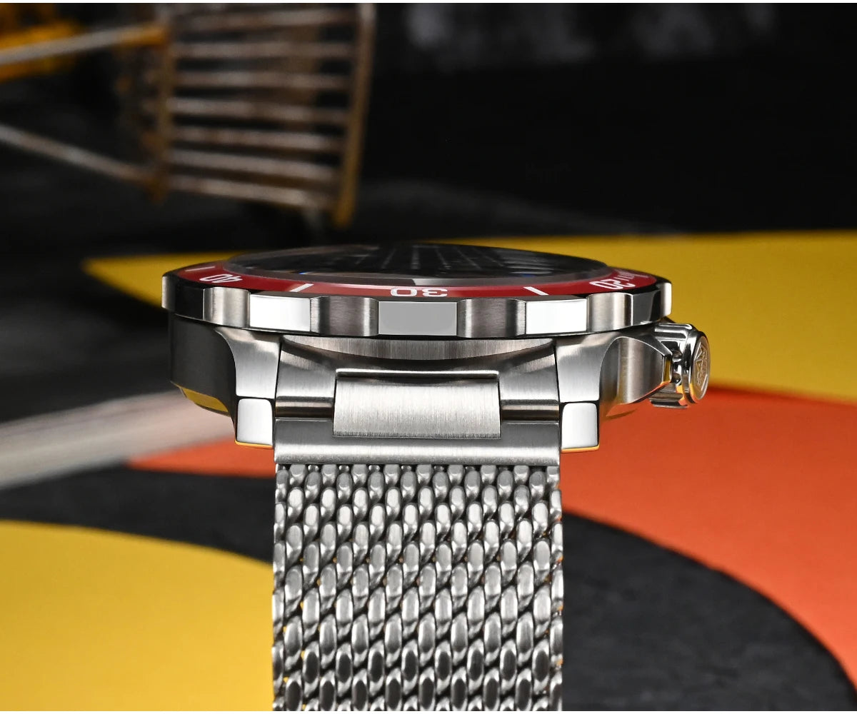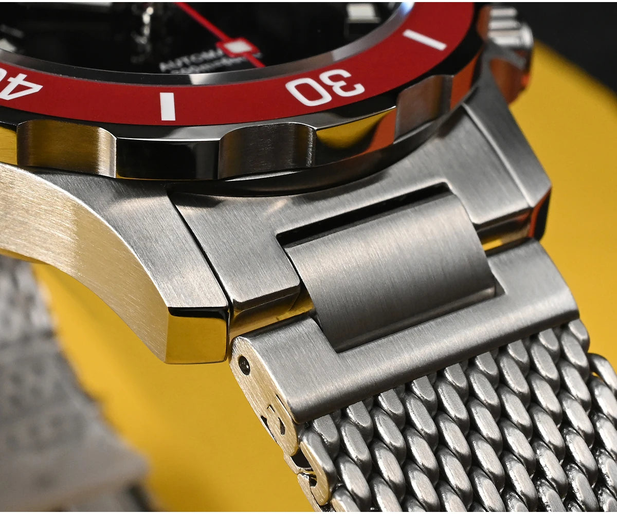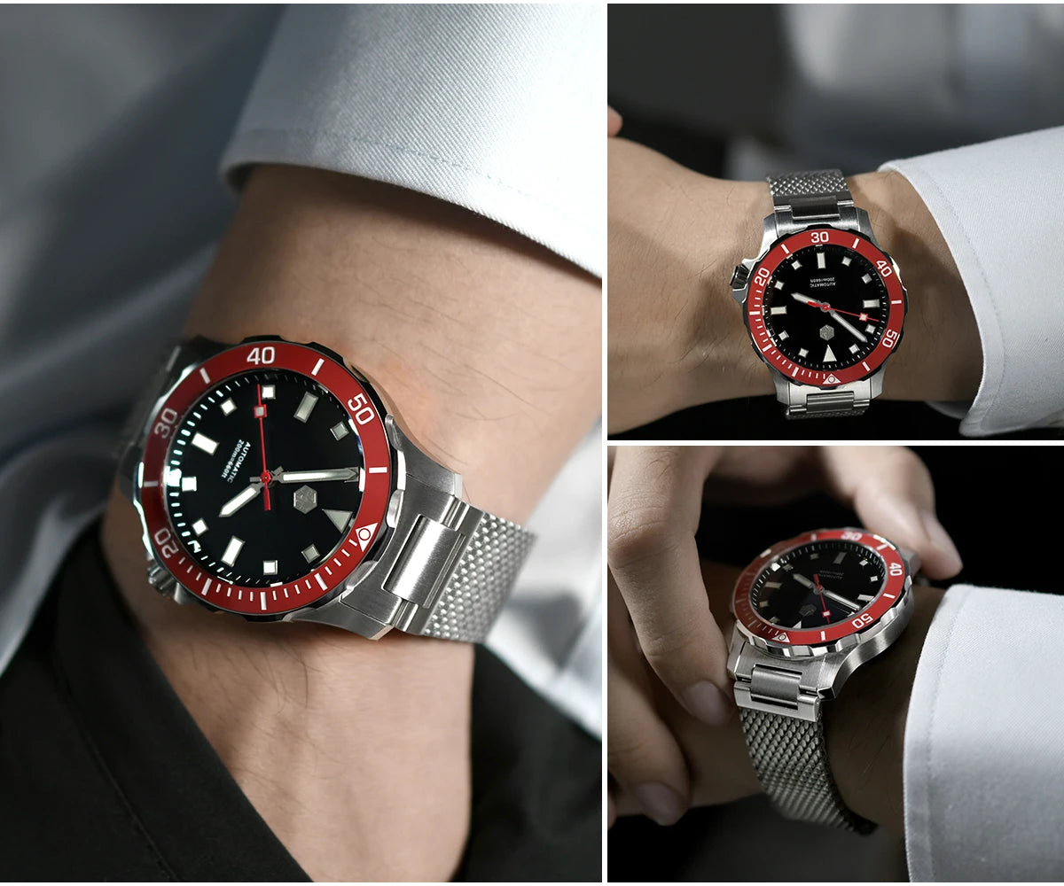 The San Martin Original Design Diver 39.5mm V2 is a rugged automatic diver watch built for serious swimmers and daily explorers alike. With a 200m water rating, a scratch-resistant sapphire crystal, and a sleek Milanese-style stainless steel bracelet, it’s not here to win a runway—it's here to win your confidence in the water and in the boardroom.