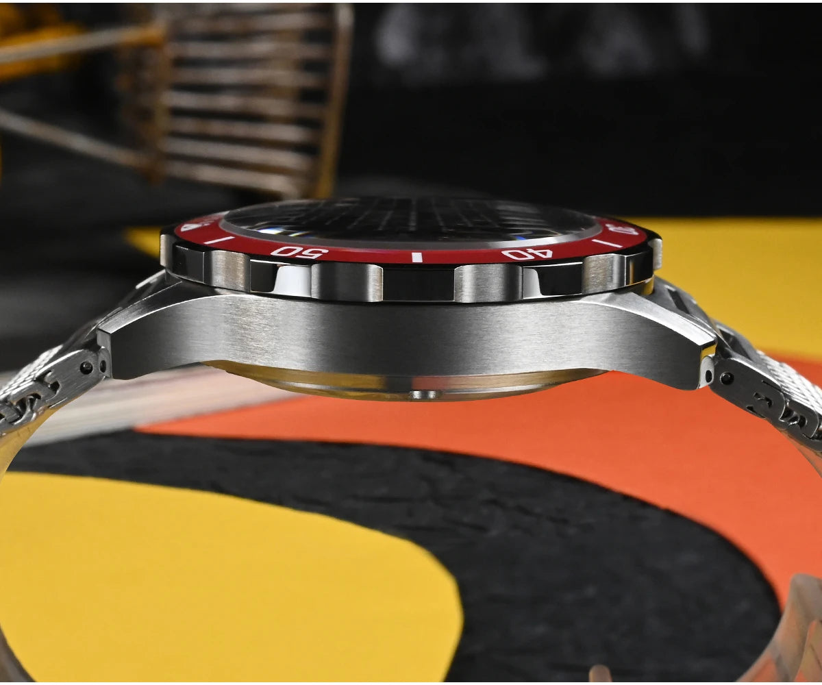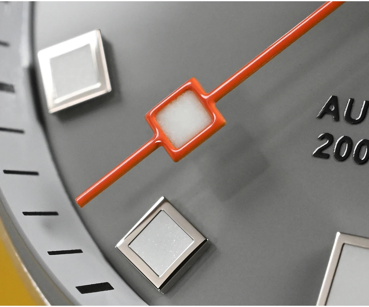 • Bezel — Orange/Red 120 Clicks Ceramic Bezel for reliable, tactile timing control.