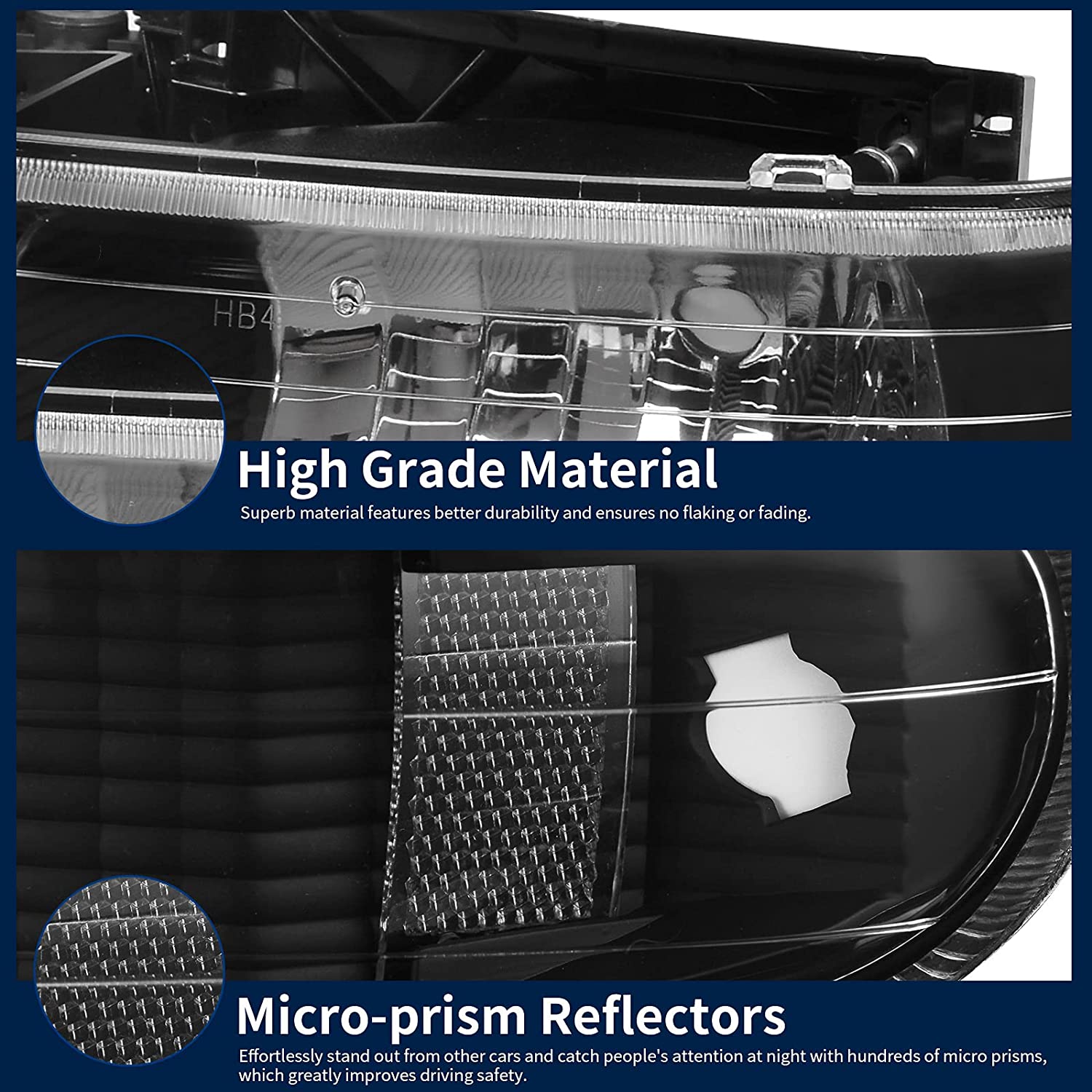 • High/low beam types: high beam bulb type: HB3/9005; low beam bulb type: HB4/9006; bulbs are not included