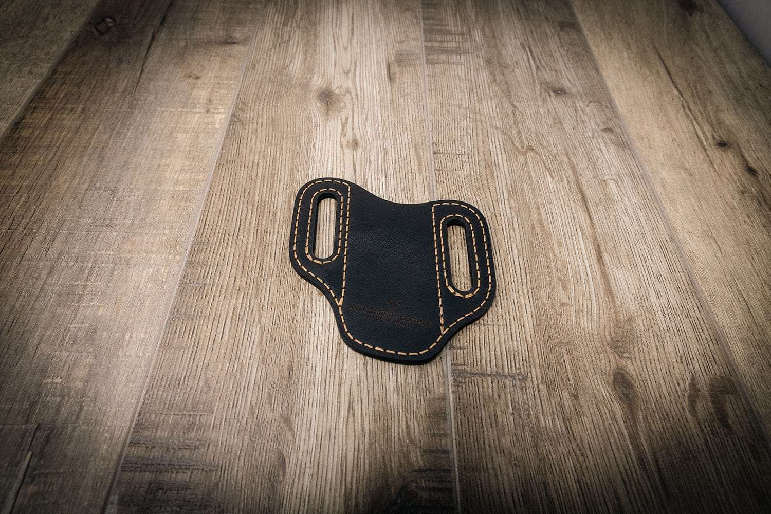Meet the Custom Leather Knife Sheath - Black, a sleek, durable holder designed for trapper knives. It’s the quiet upgrade your carry deserves—no drama, just protection with a touch of polish.