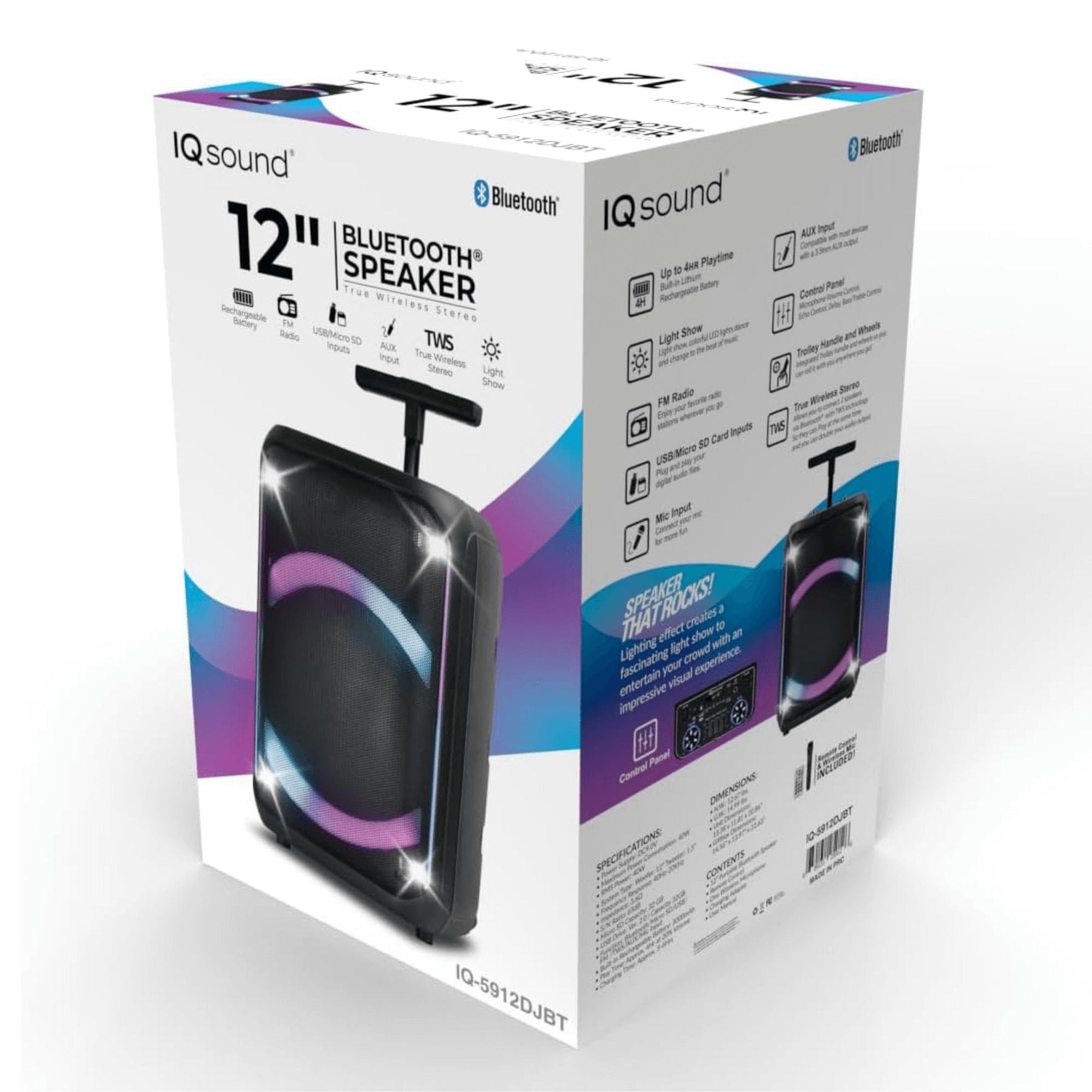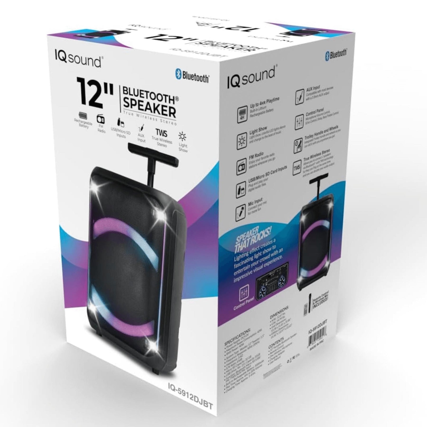 IQ Sound 12-Inch Portable Bluetooth Party Speaker with TWS