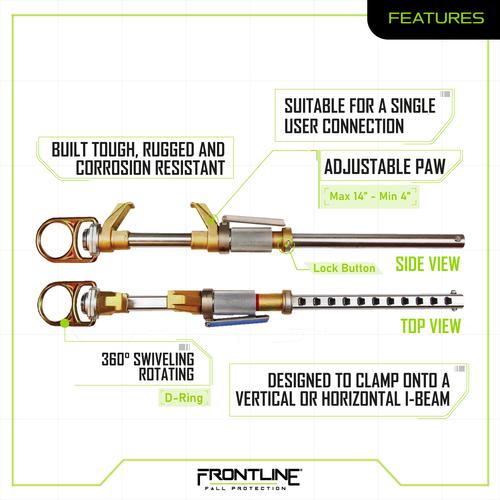 • The Frontline Vertical/Horizontal Beam Anchor is a fixed I-beam anchor that is easy to operate and designed to clamp onto a vertical or horizontal I-beam to create a fixed anchor point.