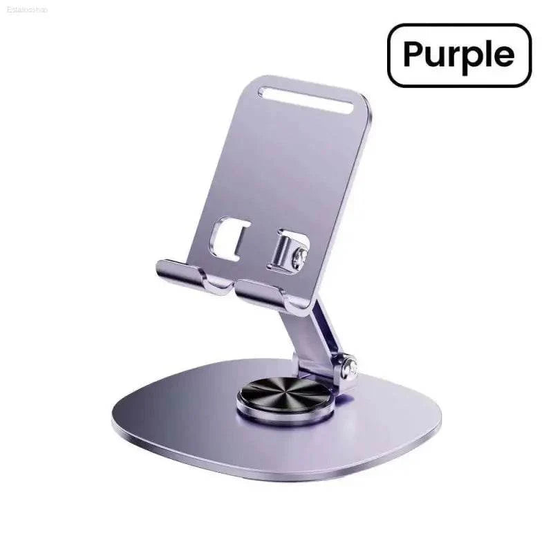 Meet the Olaf Adjustable Rotating Cell Phone and Tablet Stand with Swivel Design for Hands-Free Use with iPad and iPhone—a hands-free solution that stylishly elevates your desktop. The purple and gray stand delivers versatile viewing angles for videos, calls, or browsing without juggling devices.
