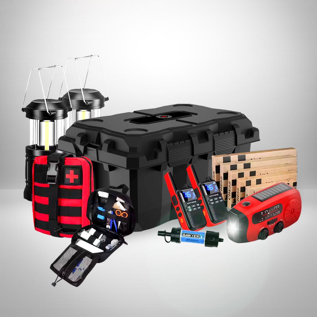 The Safe House Survival Kit is a complete 72-hour emergency solution designed for 2 or 4 people. It bundles essential first aid, sustenance, shelter, light, and practical tools—packed in a single, ready-to-go kit you hope you never have to use, but are glad to have when you do.