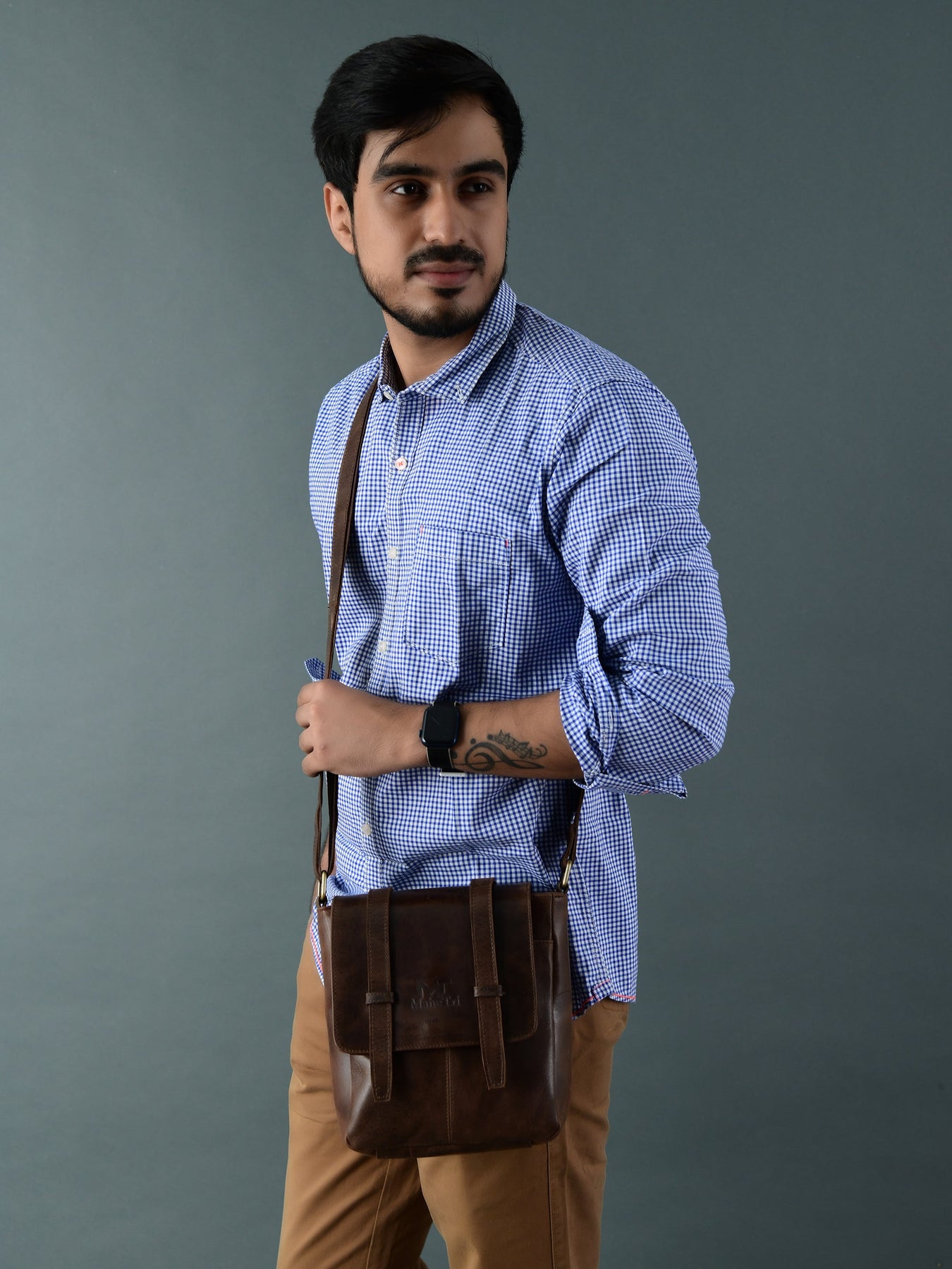 Introducing our Leather Shoulder Messenger Bag, a versatile accessory built for everyday life and designed for both men and women. Crafted from durable buffalo leather, it features two decorative straps on the large flap for added style and a practical, hands-free experience.