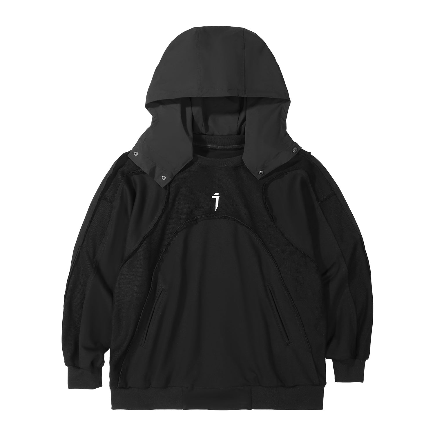 • Detachable hoodie to allow for transformation from crewneck into a hoodie