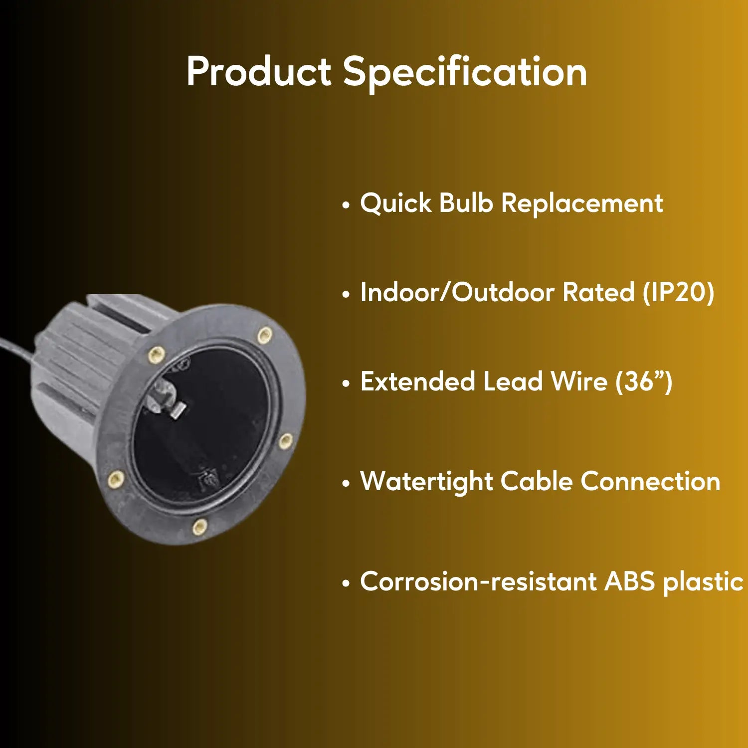 Meet the MR-16 Well Light Fixture Body with Socket and Cord — a durable, elegant in-ground lighting solution that shines both indoors and outdoors. Crafted to illuminate pathways, wells, and surrounding landscapes, it blends rugged durability with refined aesthetics to upgrade any space.