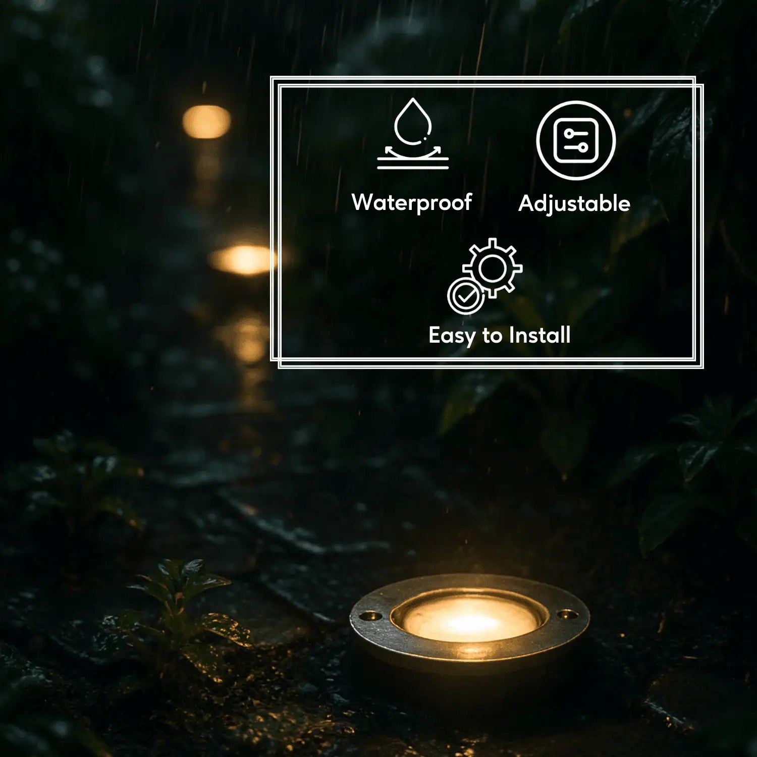 • Water-tight strain relief protects the wiring from moisture, ideal for outdoor installations.