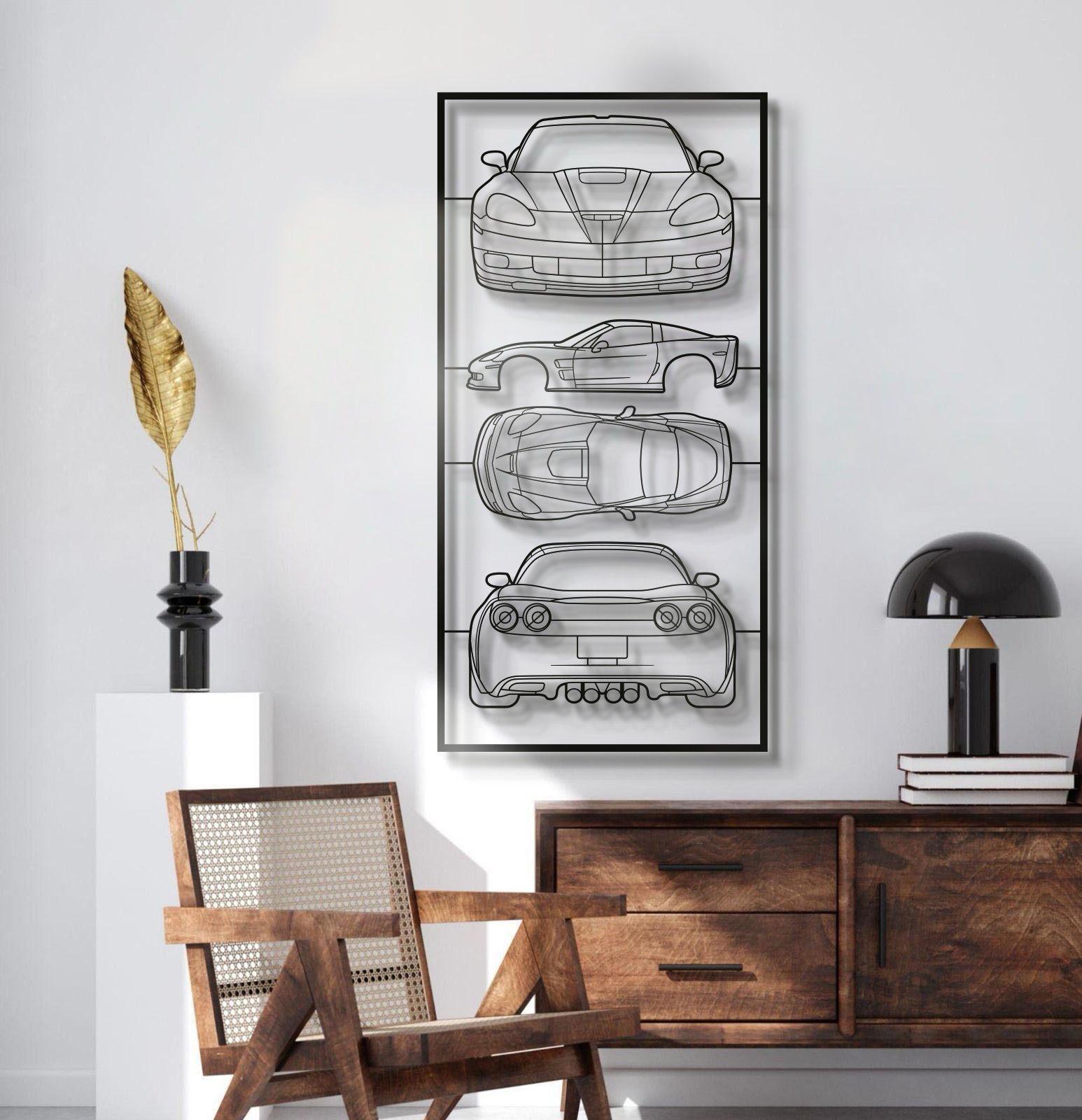 Meet MT1446: the 2009 Corvette ZR1 Quad Profile Metal Frame Silhouette—an automotive‑enthusiast centerpiece that turns any space into a high‑octane gallery. Perfect for car lovers and bold decor fans alike, it brings a showroom vibe to your home, garage, hallway, living room, or office.