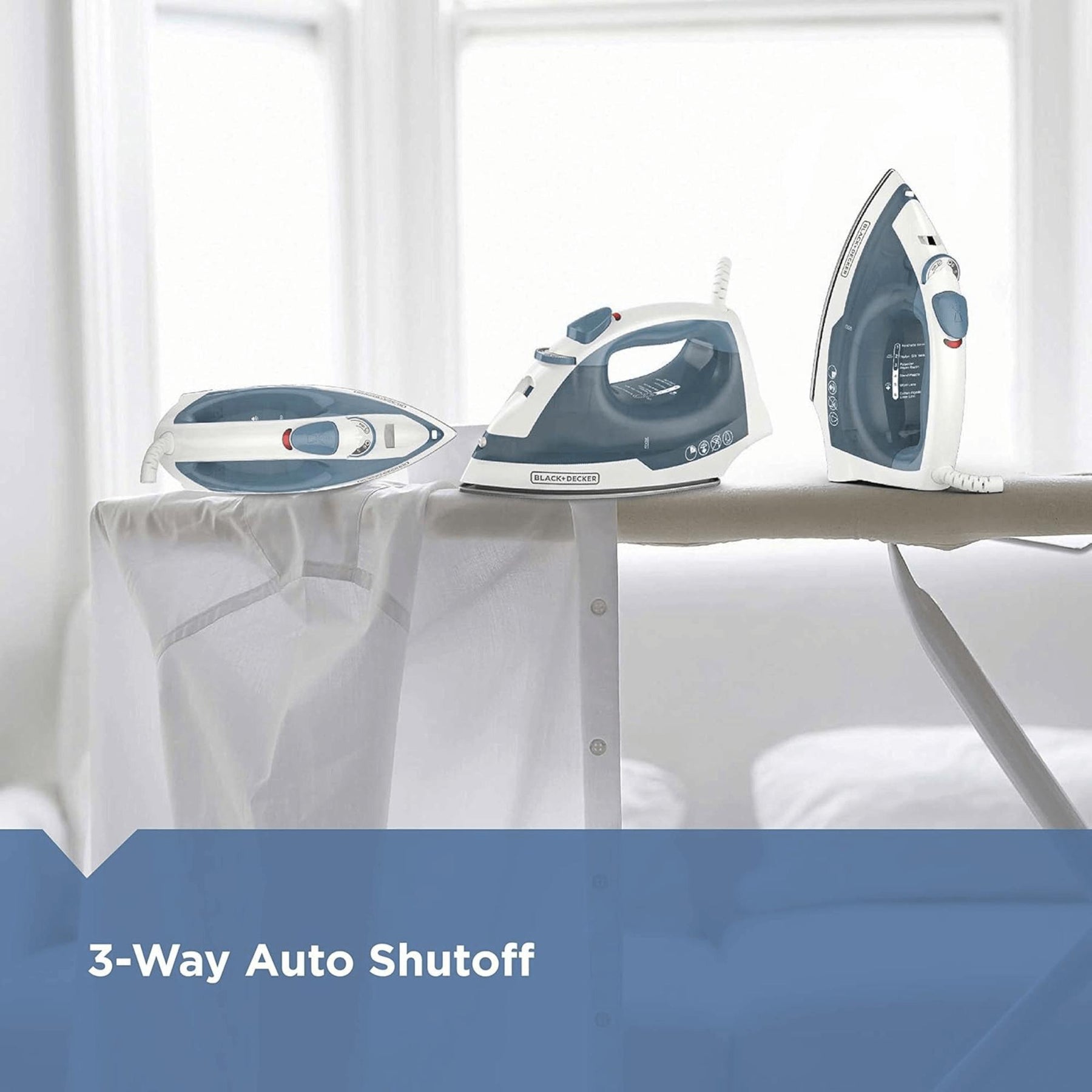 • 3-Way Auto Shut-Off: motion-sensitive technology that shuts off the iron if left inactive on its heel, side or soleplate.