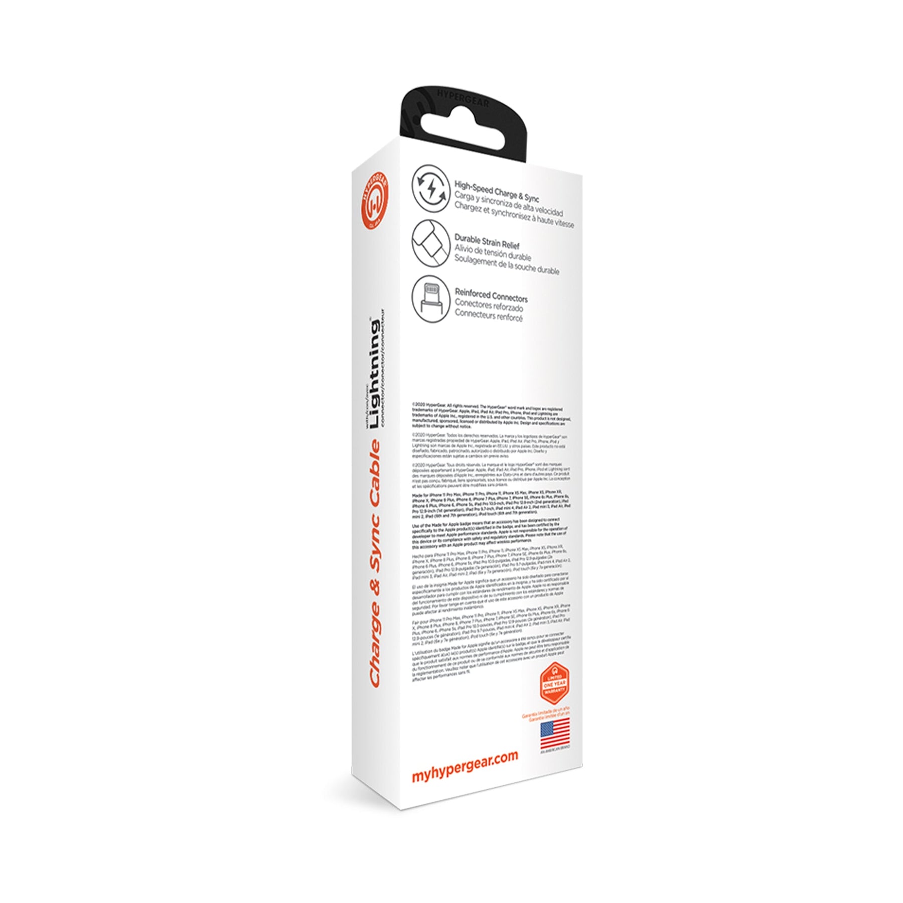 Ready to give up on your flimsy and frayed cable? The HyperGear USB to Lightning Rounded Cable 4ft is built with industrial strength PVC to deliver the flexibility you need to reliably charge and sync your Apple devices. Featuring reinforced stress points and thick gauge wiring, this ultra-durable cable has been proven to last 5x longer than standard cables.