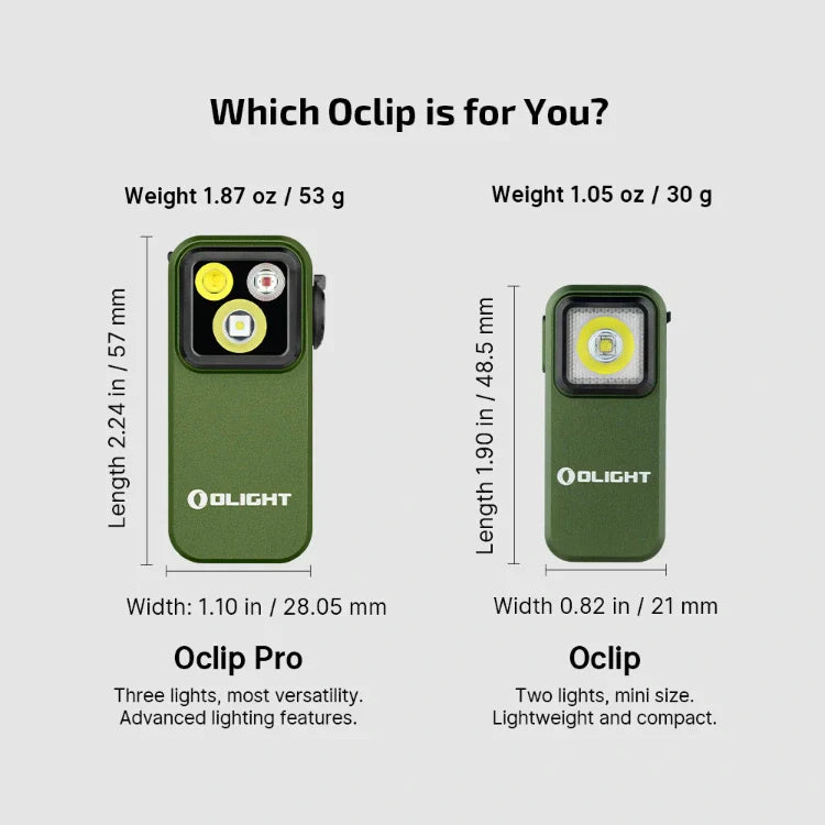 Meet the OLIGHT OCLIPPROODGC2M Oclip Pro Clip-on Flashlight in OD Green—a pocket-sized lighting sidekick built for everyday carry, DIY tweaks, and late-night adventures. With three lighting solutions and a fashion-forward silhouette, it delivers practical brightness without the bulk.