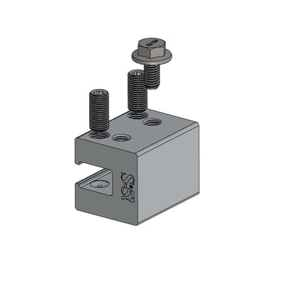- Turning the clamp 90 degrees so that the bolt hole side is facing up, slip the clamp on the seam and tighten the setscrews.