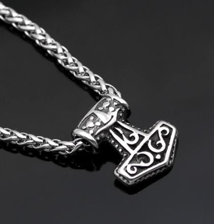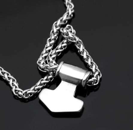 The Vikings Thor's Hammer Pendant Necklace blends Norse legend with modern style—a bold Viking-inspired accessory for myth lovers and fashion-forward wearers alike, crafted in stainless steel on a sleek snake chain.