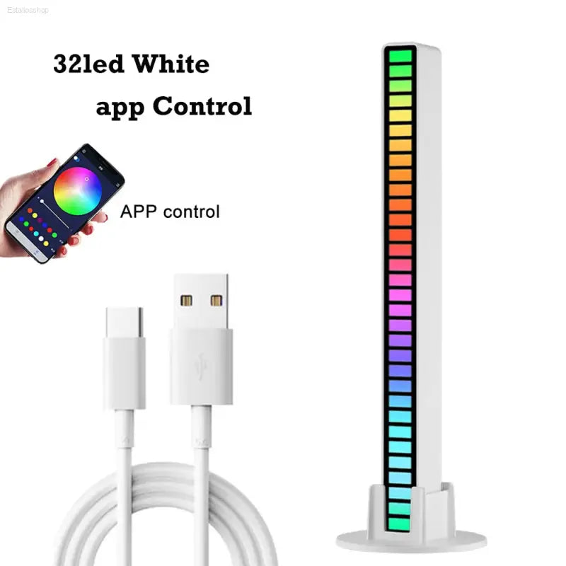 FTOYIN 32-LED RGB Music Rhythm Light Bar – Rechargeable APP Control Sound-Activated Night Light for Car and Gaming
