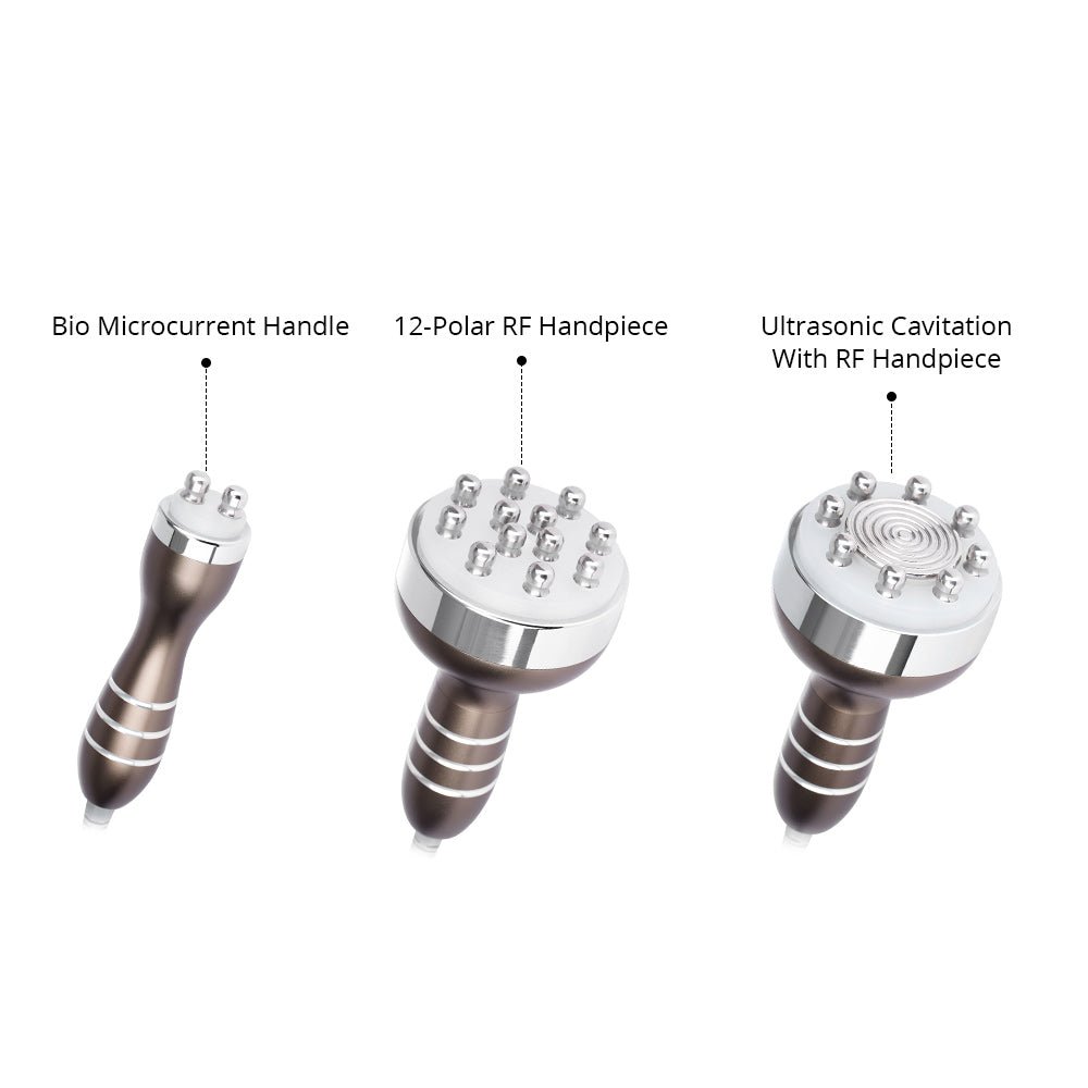• Versatile handpieces include dedicated handles for targeted cavitation, RF, and vacuum therapy on both body and face.