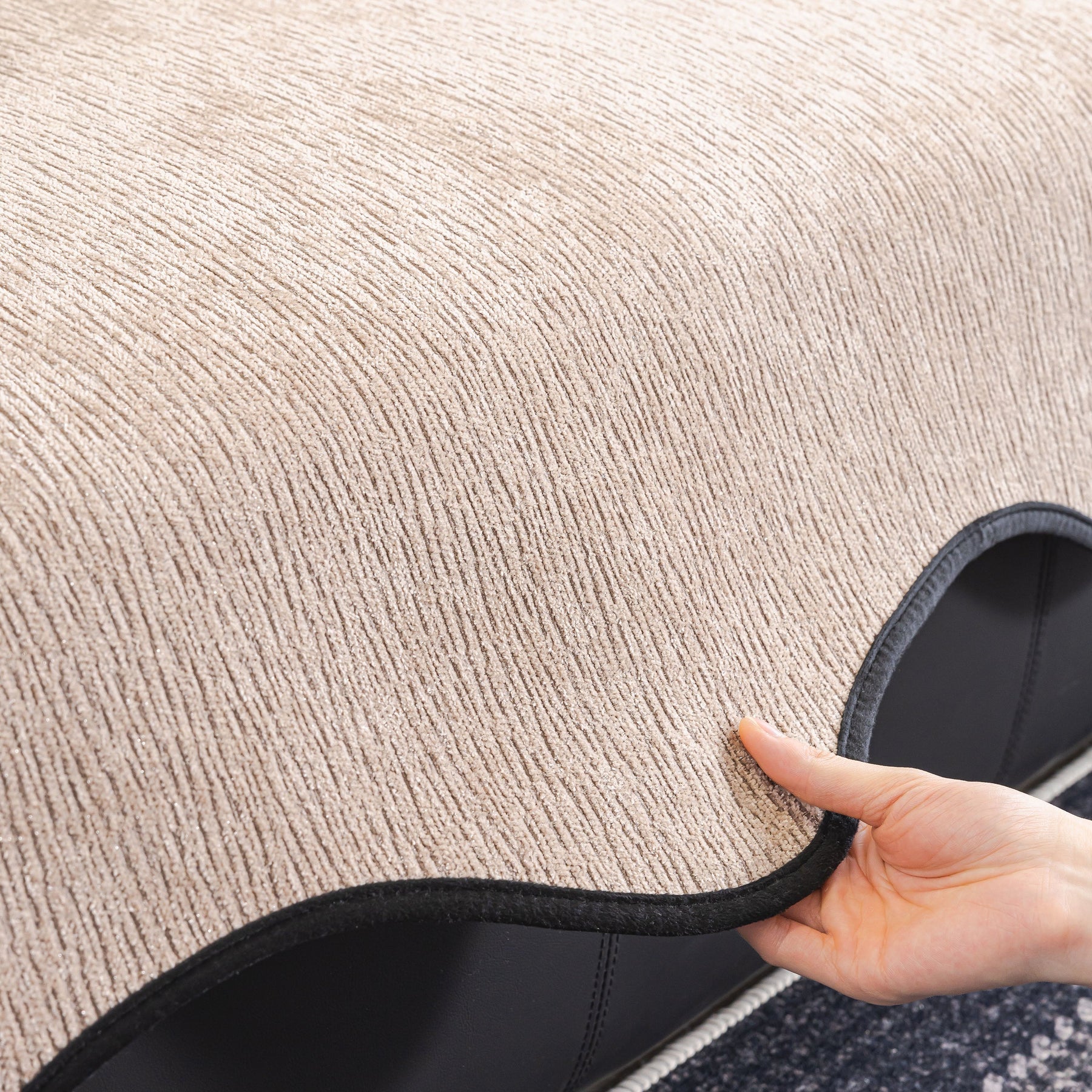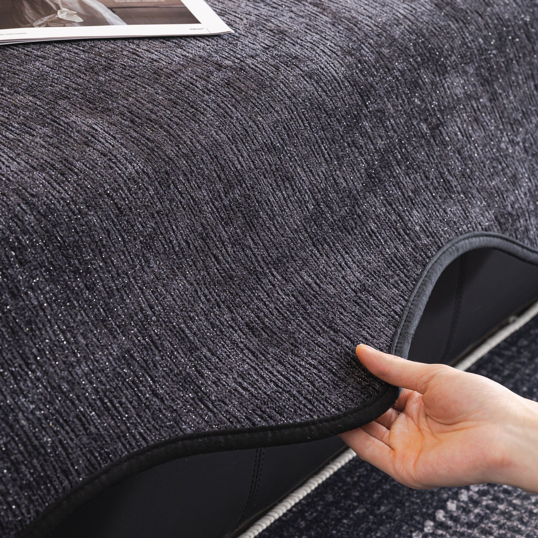 Chenille Couch Cover with Scalloped Edge, Non-Slip Modular Slipcover Sectional
