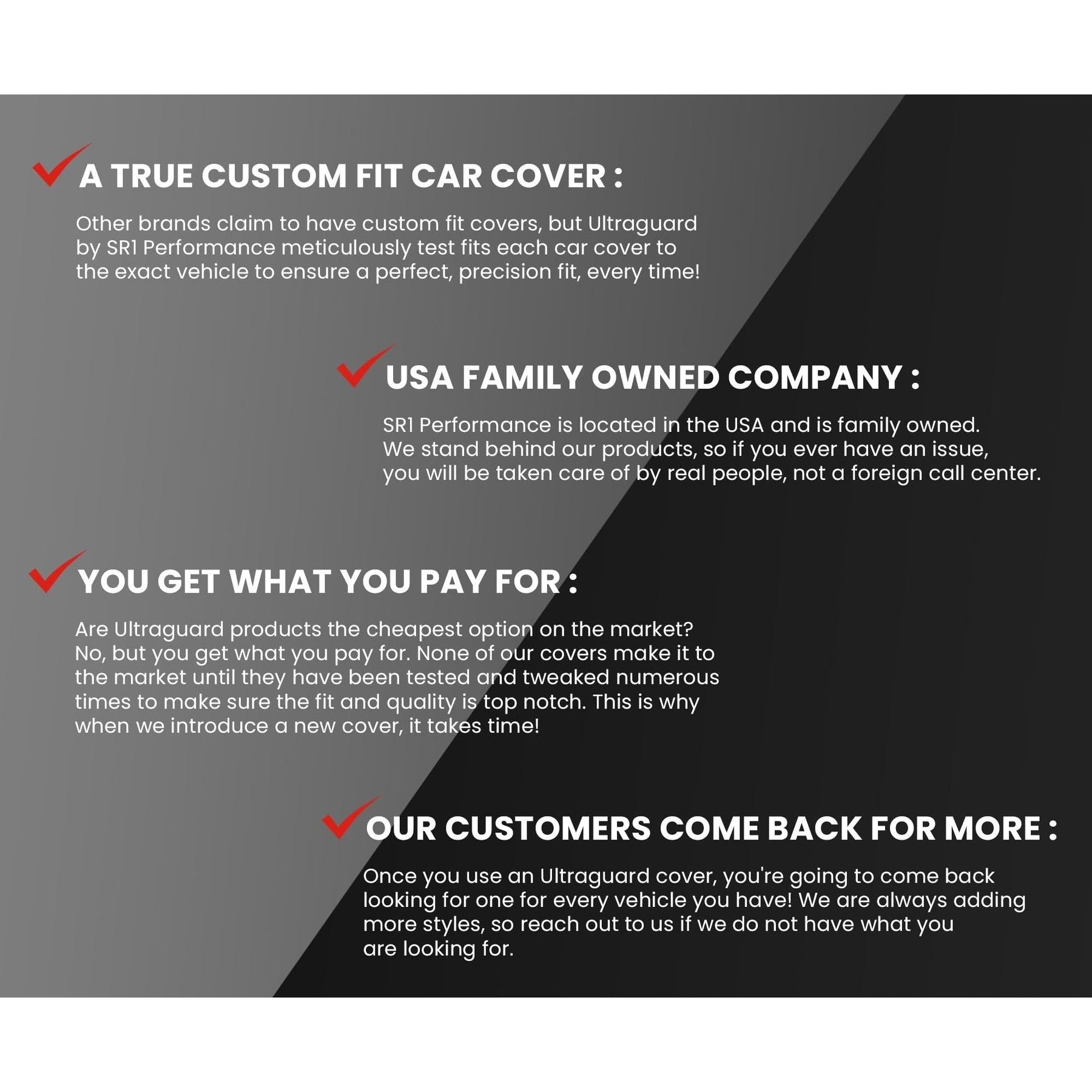 • Snug Custom Fit Snug Custom Fit. Crafted with meticulous attention to detail, every Ultraguard cover is made specifically to each vehicle, boasting a contoured fit that hugs every inch of the car's body.
