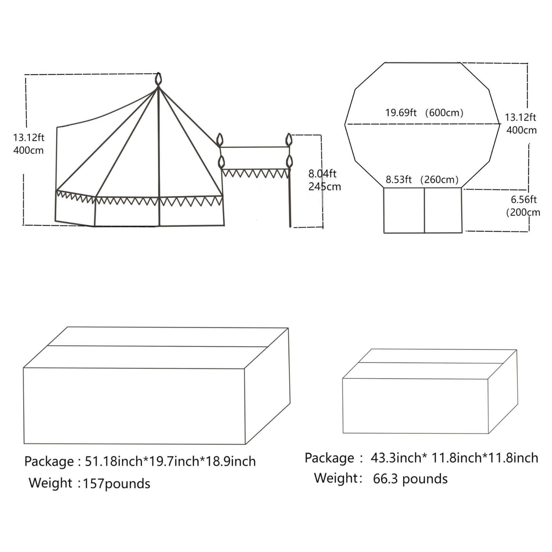 [13X19FT] Extra Large Heavy Duty Outdoor Four Seasons Glamping Canvas Bell Yurt Tent (SAK45688)