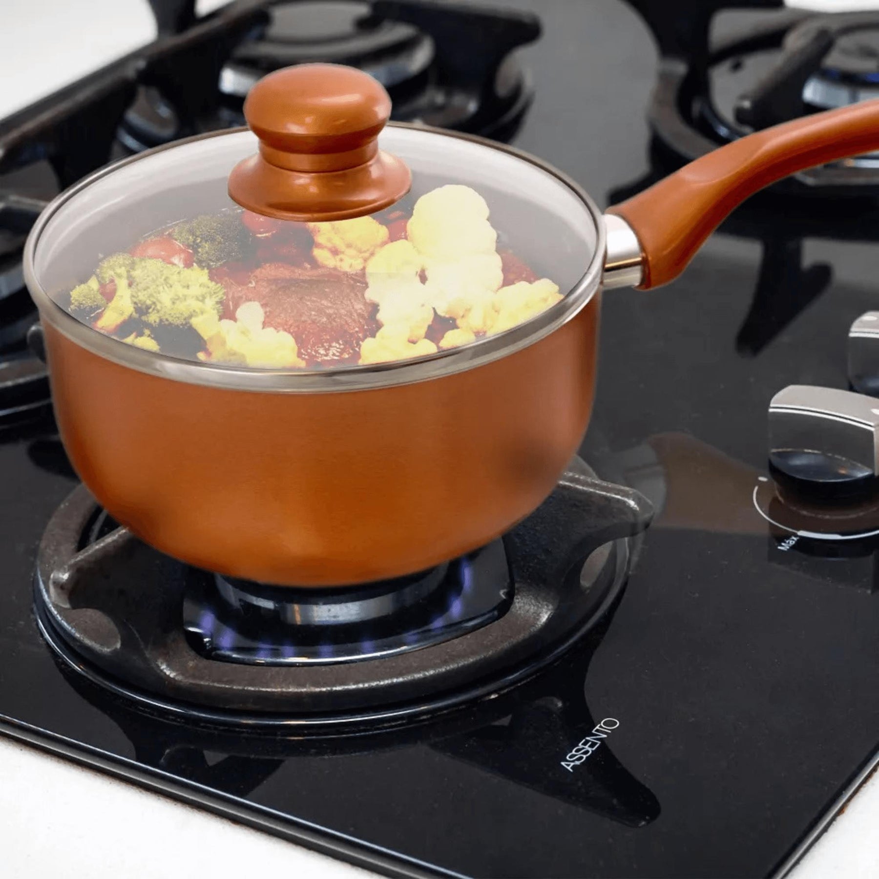 Better Chef 1.5Qt Ceramic-Coated Copper-Tone Saucepan with Glass Lid