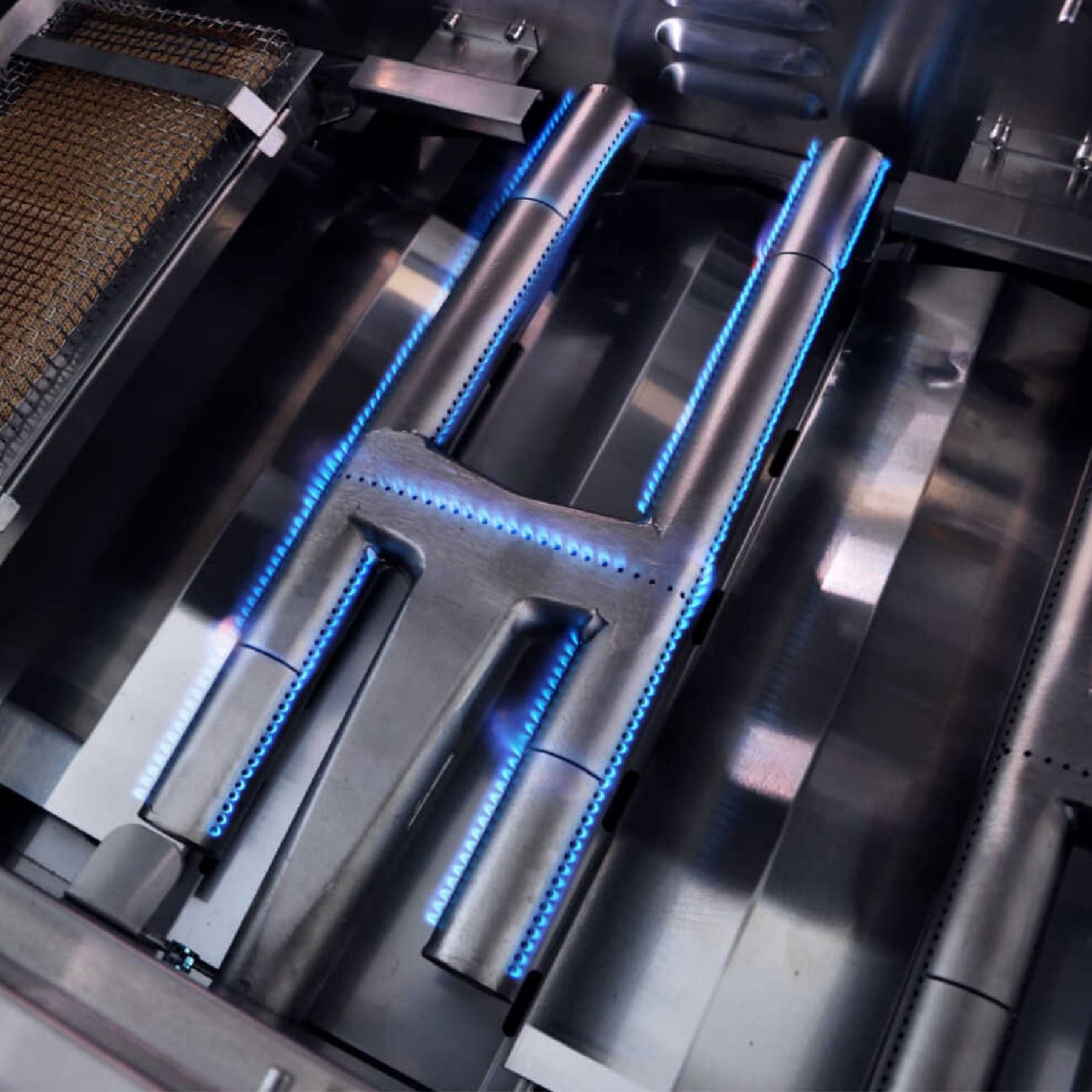 • The heavy-duty H-shaped cast stainless steel burner and large infrared burner provide exceptional versatility, delivering high heat for searing steaks or gentle, even cooking for delicate foods.