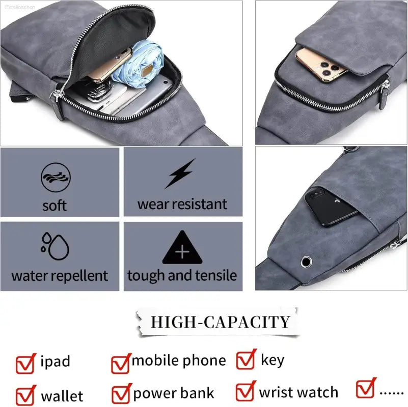 • Material: Constructed from premium, water-resistant fabric, this men's water-resistant sling offers exceptional durability and protection, keeping your belongings safe from unexpected spills or rain showers.