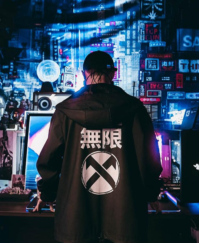 Meet the HiJ5 Defiance Jacket, a bold, all-season layer built for techwear enthusiasts and city explorers alike. It features an across-the-body design with translation (Urban Industries) Kanji on the back and a multi-pocket front for practical style that keeps up with your hustle.