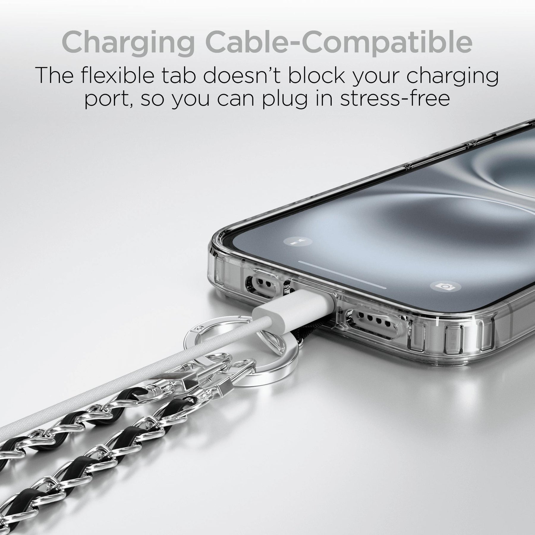 HyperGear TECHcessories Silver Chain with Black Vegan Leather Universal Crossbody Phone Strap