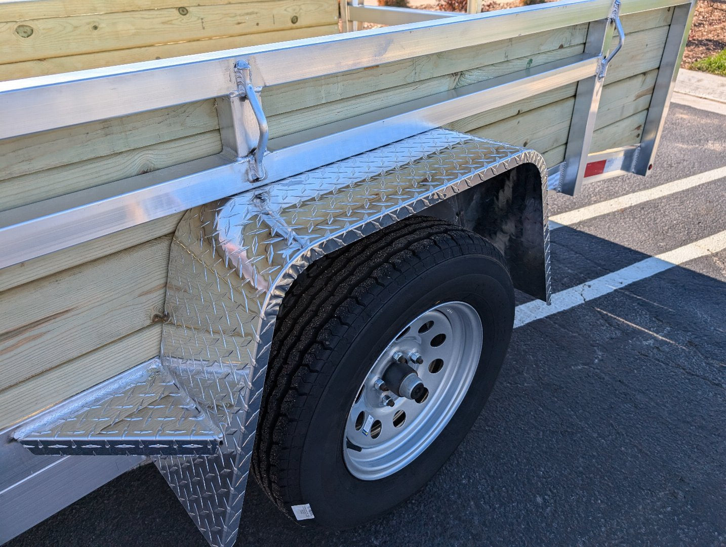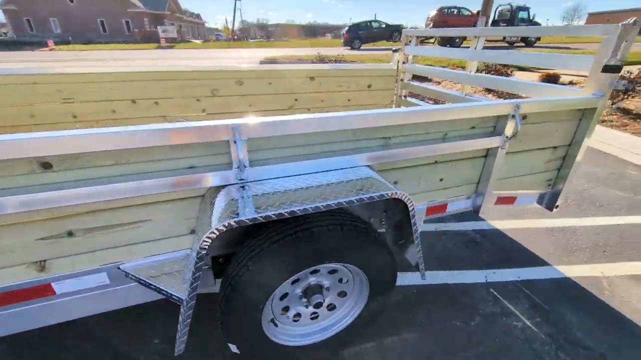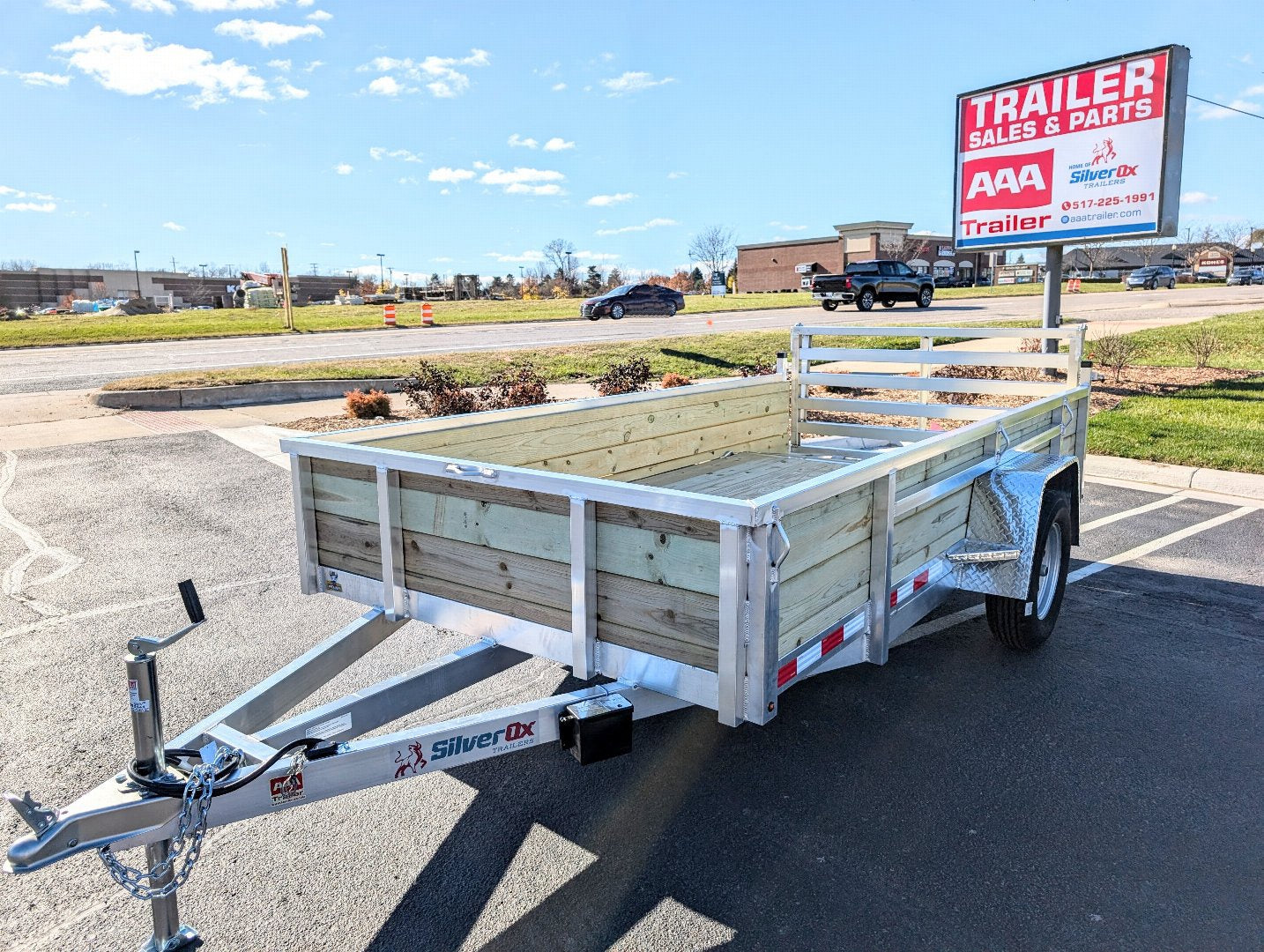 Silver Ox 6x12 Single Axle Woody 3 Board Aluminum Utility Trailer with Dovetail, Bi fold Gate, and Extra Tie Downs