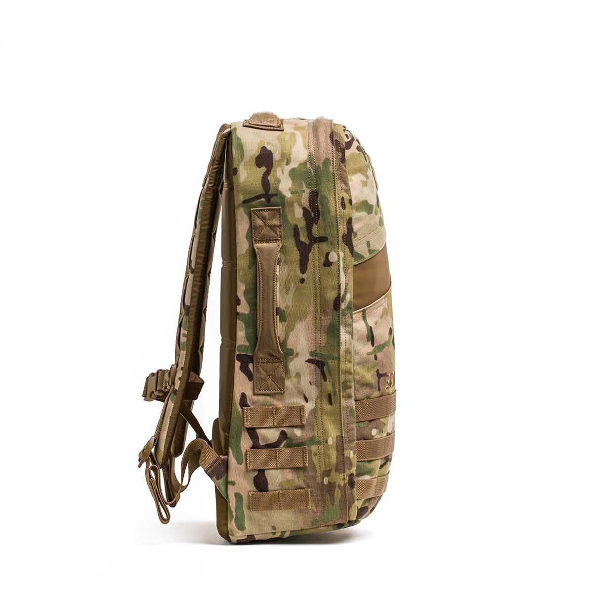 • 20L + 25L Features: 4 padded handles: top, bottom, and both sides; 3 rows of external MOLLE webbing on the front and side; Comes with Padded Hip Belt (sold separately on 20L and 25L); 2 interior Ruck Plate Pockets, one “Standard” size, one “Long” size; Strap Width: 3.5"