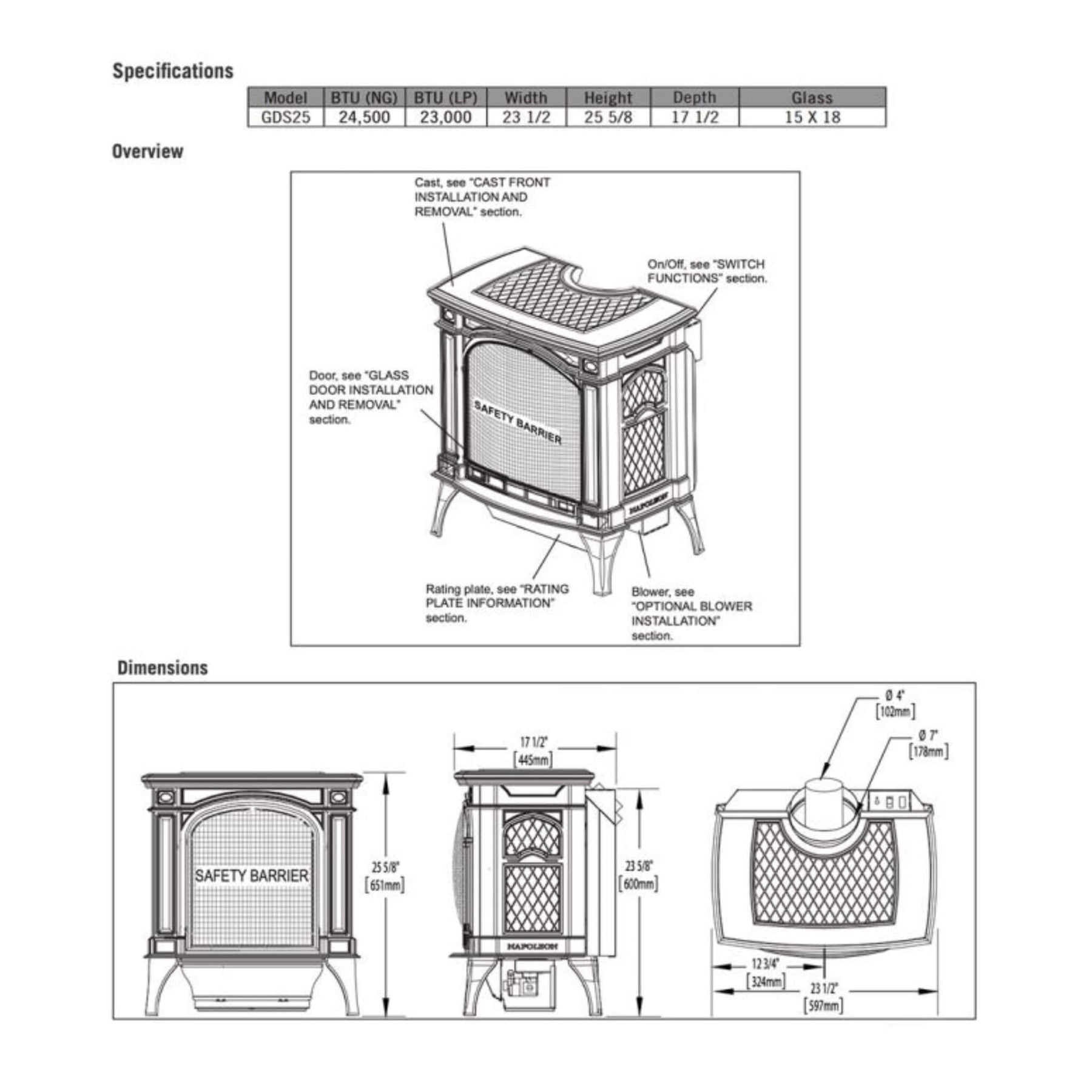 • Size & finish: 25" Direct Vent stove with a metallic black finish for a sophisticated look that fits traditional and contemporary interiors.