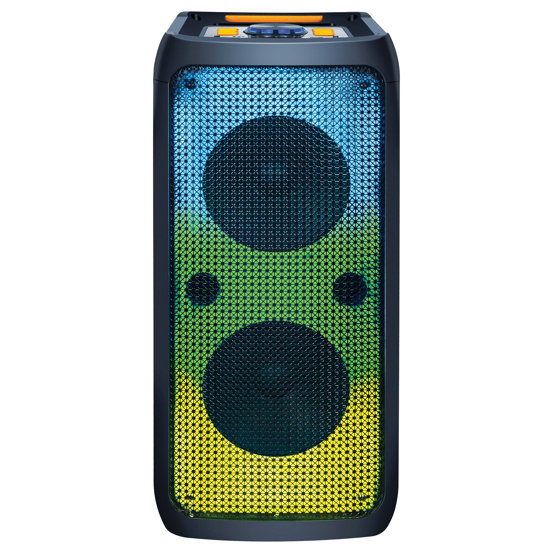 Meet the Supersonic 2 x 8" Portable Bluetooth Speaker with True Wireless Technology (IQ-7028DJBT)—a durable, flexible sound system built for home entertainment, seminars, and events. Dual 8" high-efficiency drivers deliver powerful, clear audio, while a Fire Light Show of colorful LEDs dances to the beat of your music.