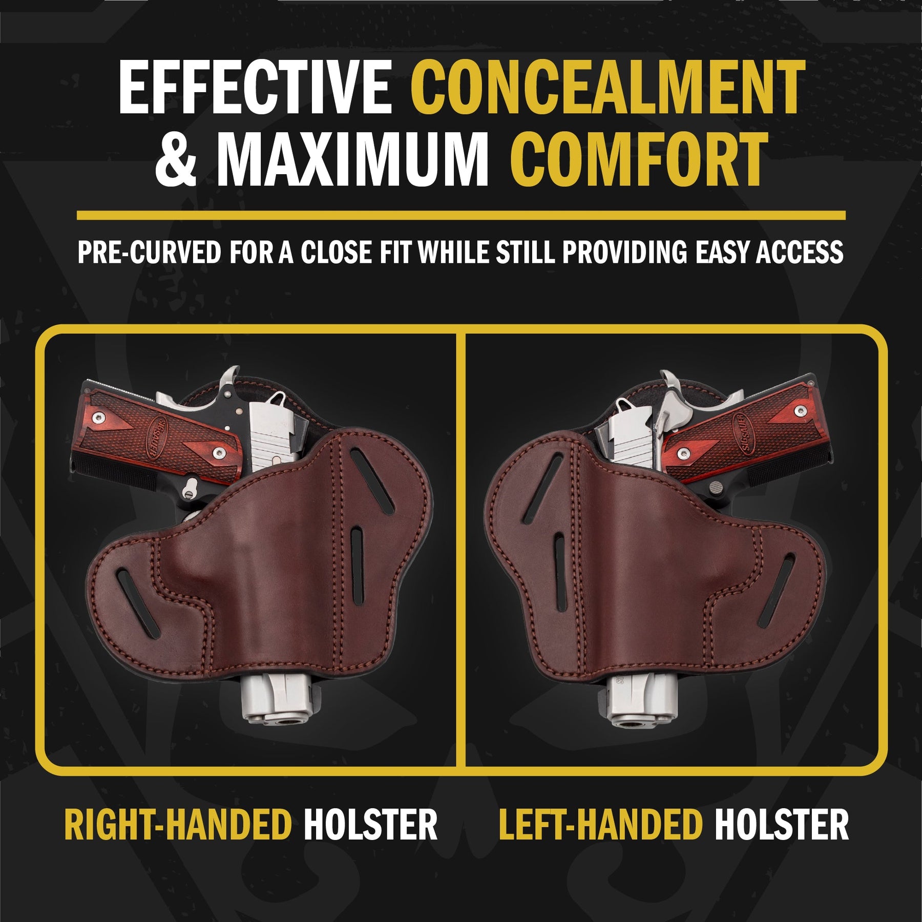 The Ultimate Leather Gun Holster | 3 Slot Pancake Style Belt Holster | Handmade in the USA! | Fits all 1911 Style Handguns