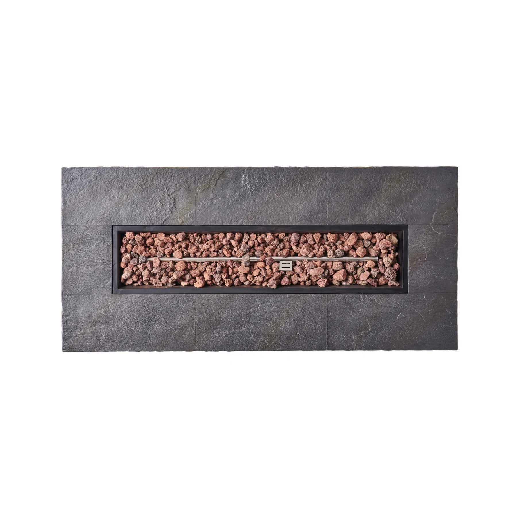 Premium 56" Outdoor Rectangular Concrete Propane Fire Pit W/ Faux Stone Pattern, 50K BTU (SAK31845)
