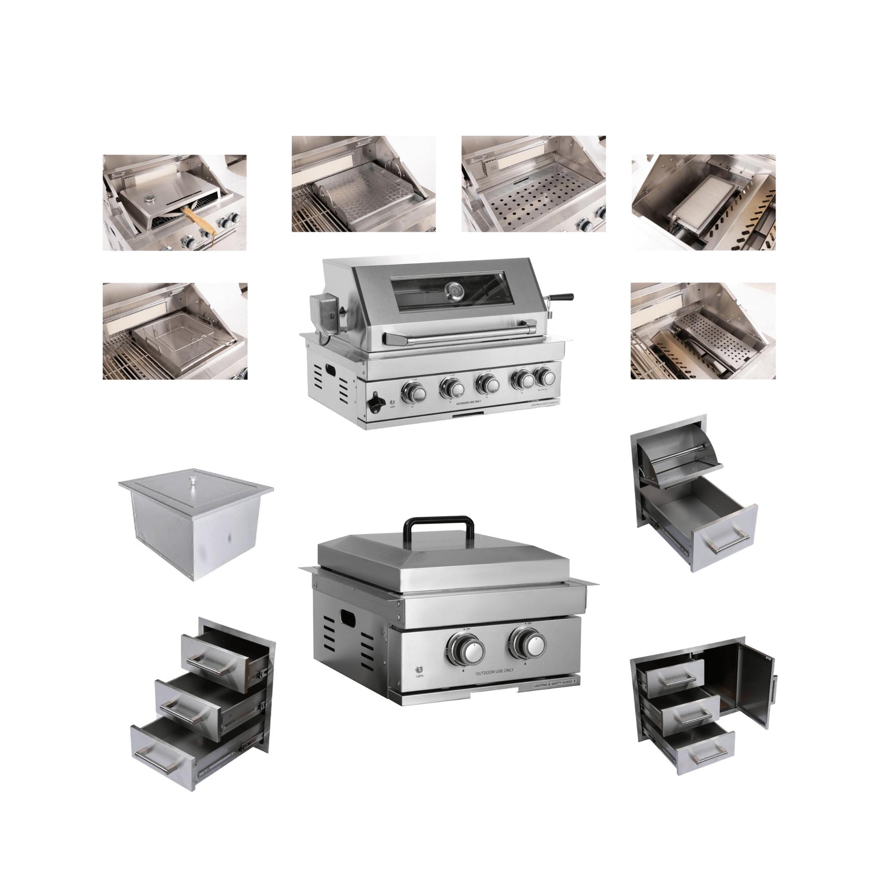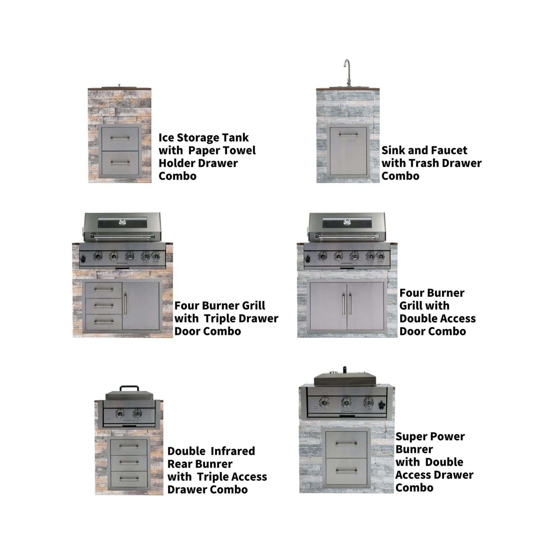 Premium Outdoor Kitchen With 32 Inch 60000 BTU Built-In Stainless Steel LPG Gas Grill, Door And Drawer Combo And Stainless Steel Ice Box (SAK98661)