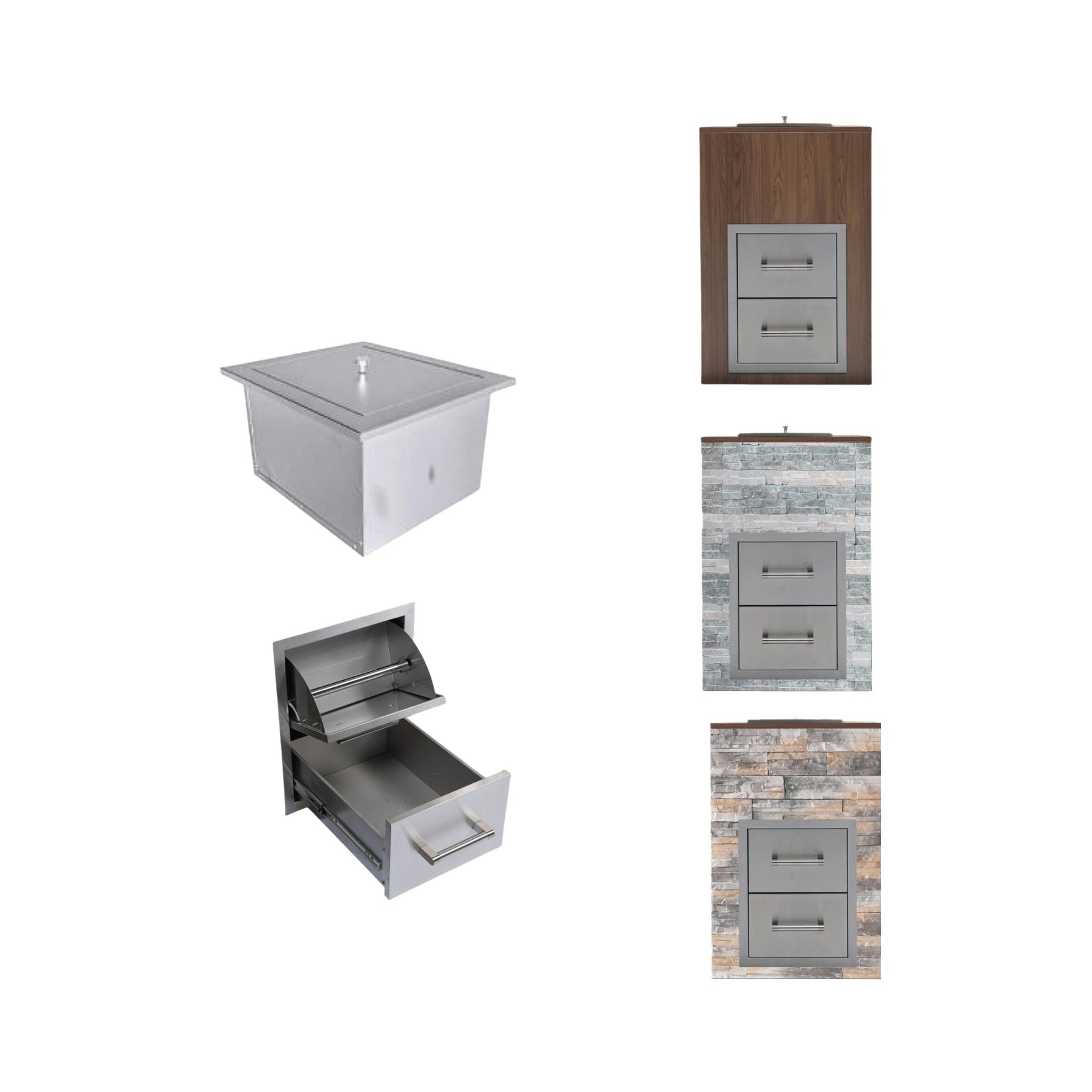 • Door And Drawer Combo And Stainless Steel Ice Box for built-in storage and ice on hand.