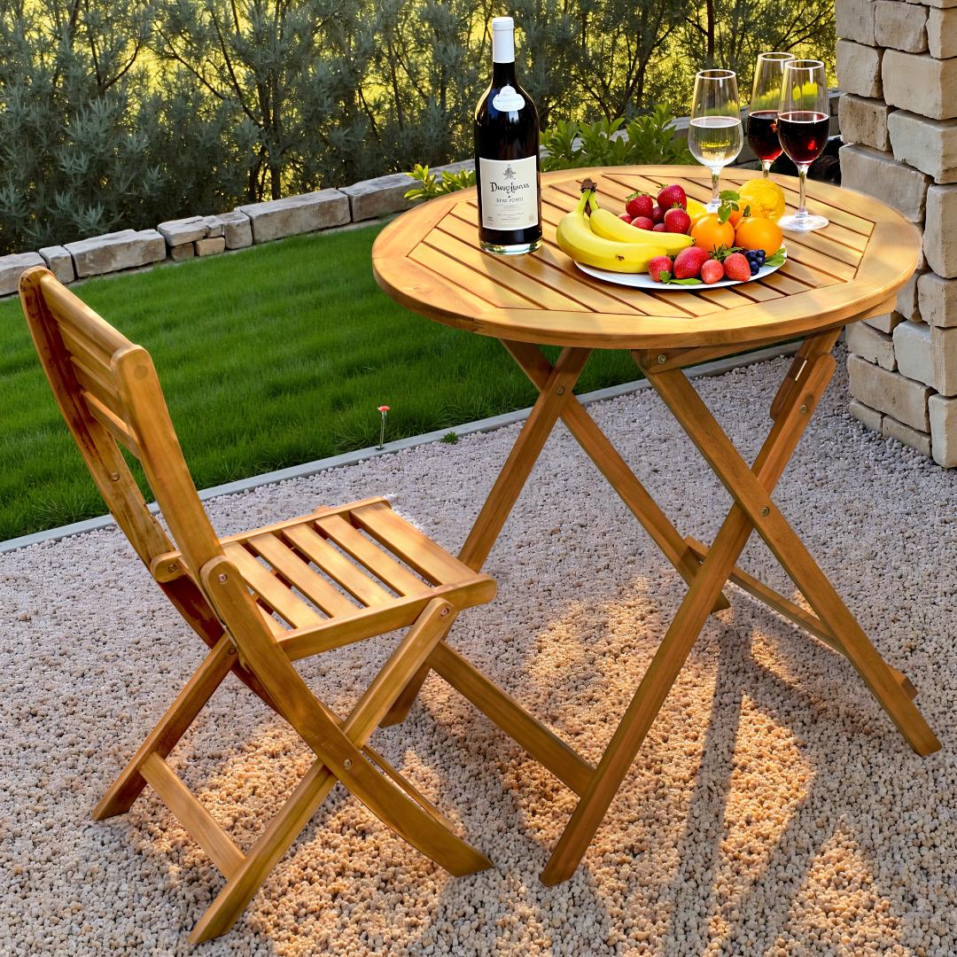 Meet the Tranquillo Anya Foldable Round Solid Acacia Wood Outdoor Table — a space-saving, durable companion for small patios, balconies, and on-the-go living. It folds flat in seconds, so hosting a quick coffee or a casual dinner doesn’t require a giant setup.