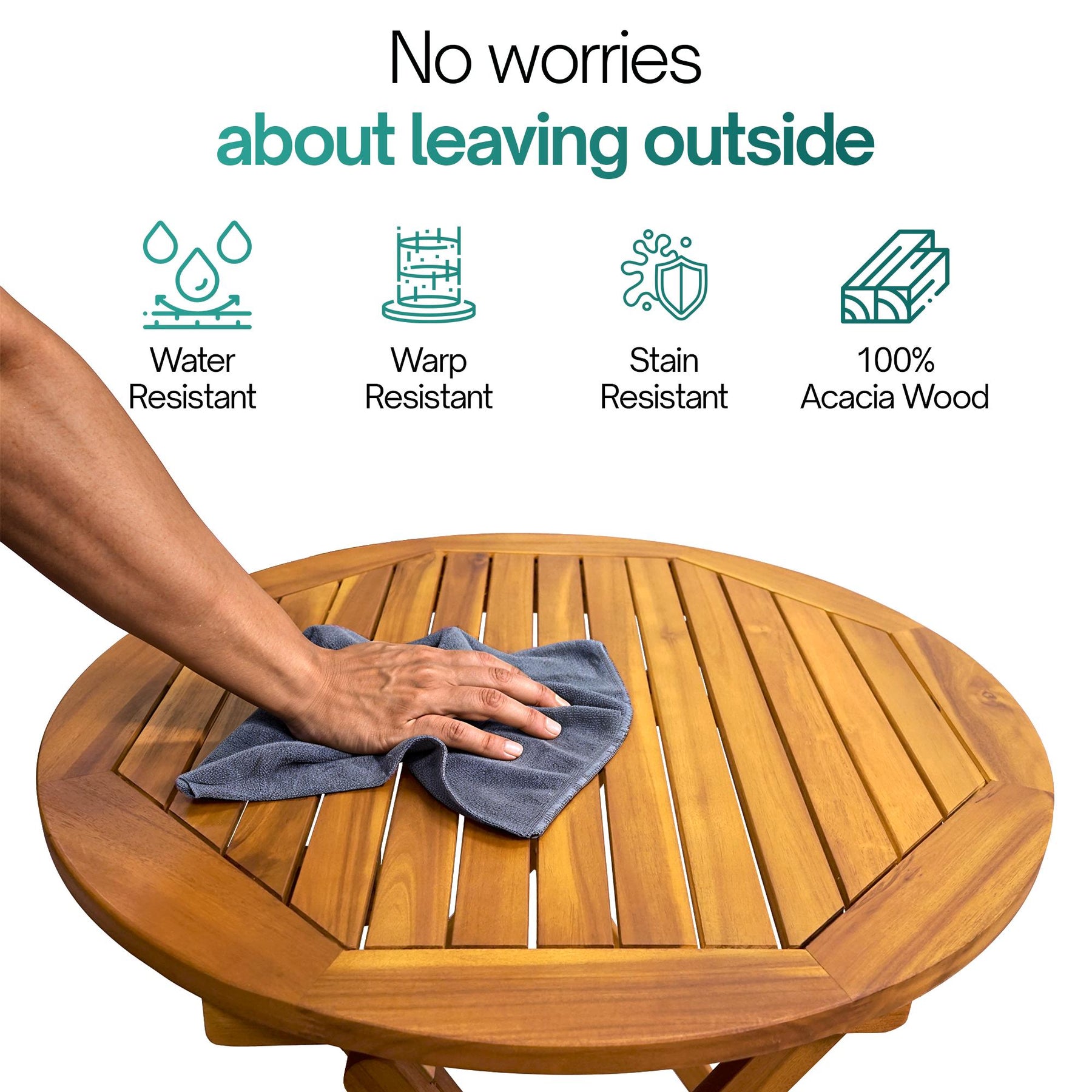 • MADE FROM 100% SOLID ACACIA WOOD — Naturally dense and durable, this kiln-dried hardwood is less prone to moisture-related damage like rain or decay. Its rich tone and visible grain provide an elegant touch, ideal for enhancing your garden furniture layout or wooden deck.