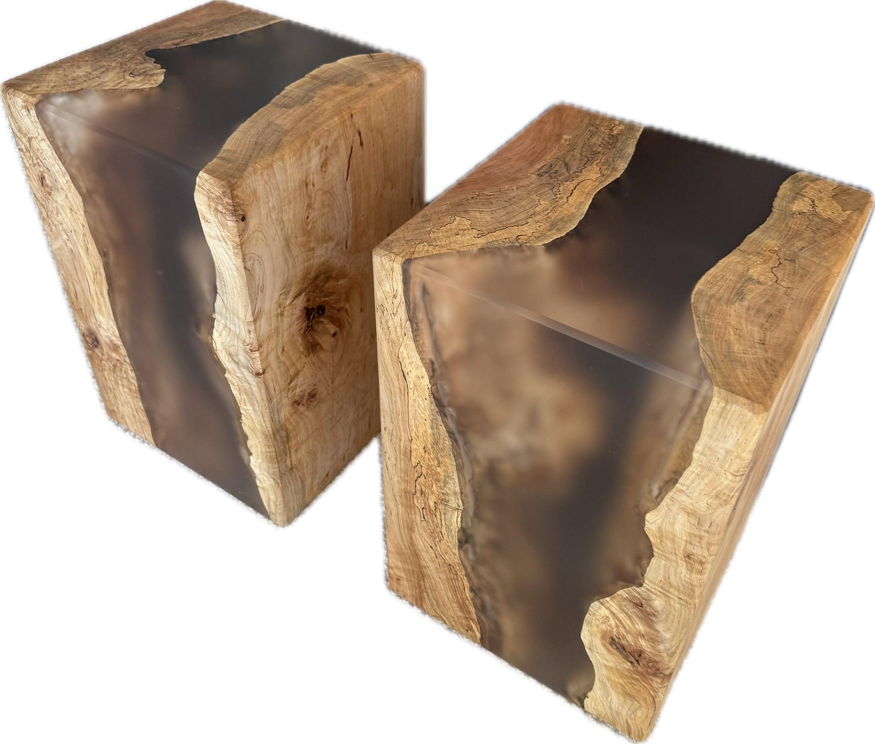 Two Chunky End Tables are a pair of solid maple and epoxy end tables built to anchor a living space with serious heft and quiet confidence. Ideal for anyone who values durability and a bold design, this two-piece set blends rustic warmth with a modern resin accent.