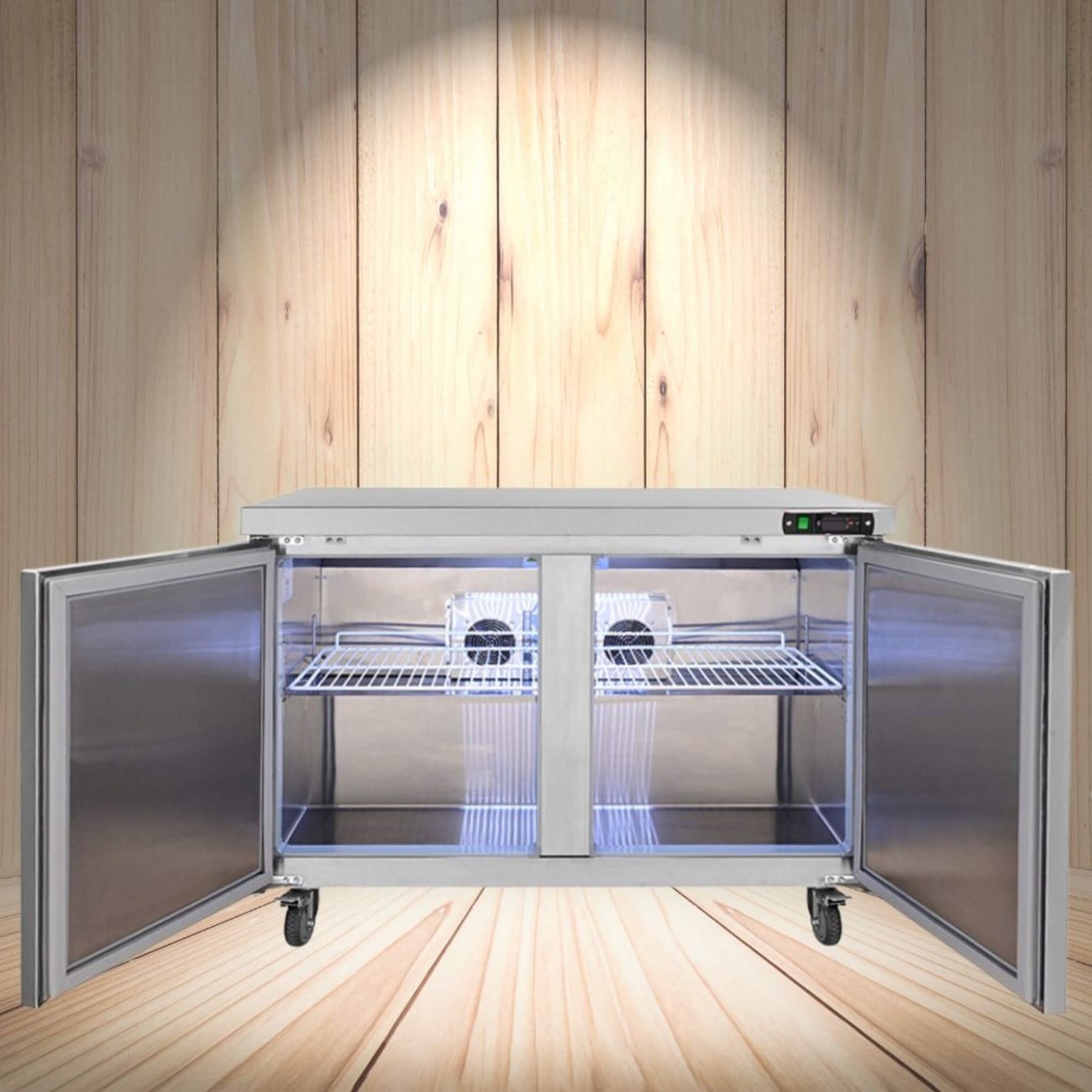 Upgrade your prep line with the 12.9 Cu.Ft 2-Door Commercial Stainless Steel Worktop Undercounter Refrigerator, built for high-volume kitchens that demand reliable cold storage and a sturdy work surface. Perfect for restaurants, delis, and catering operations that want organized refrigeration with a touch of chef-approved attitude.