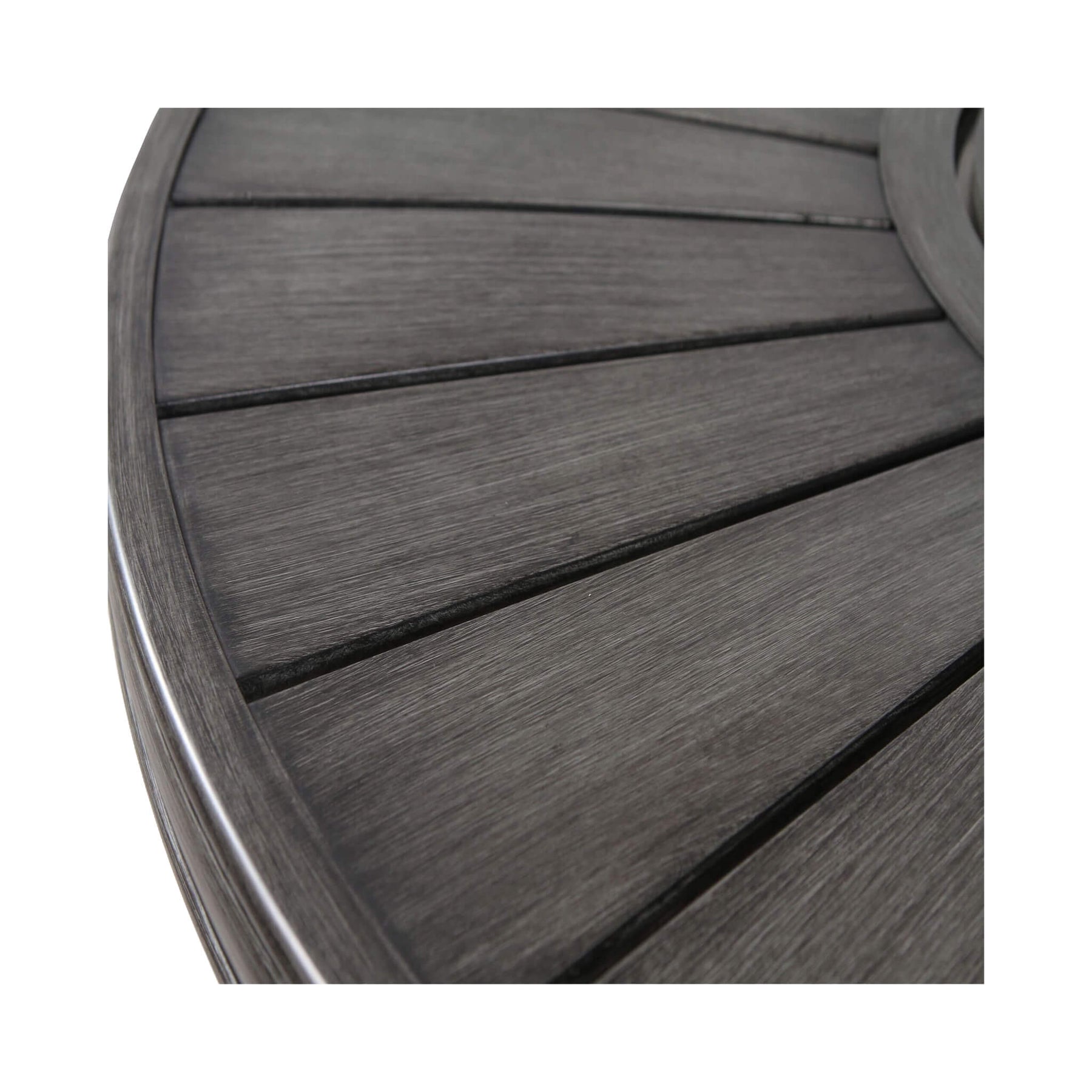 - Wood-grain tabletop—crafted from hand-painted aluminum—giving you the aesthetic of wood without the maintenance.