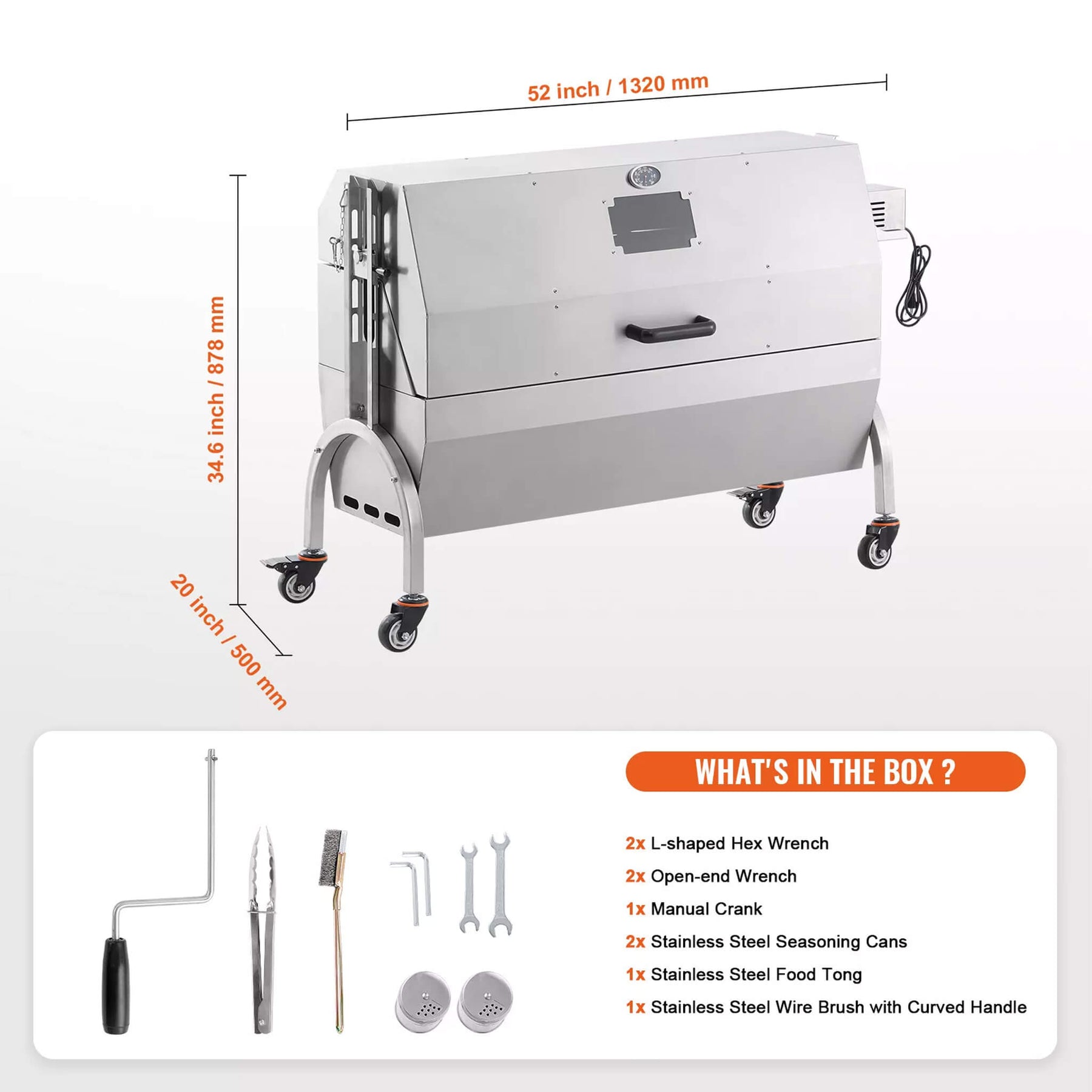 Heavy-Duty 52W Spit Roaster Rotisserie BBQ Grill For Pig, Lamb And Chicken (SAK59286)