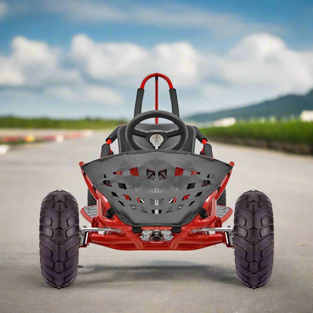 • Chassis & Durability: Rugged steel frame, roll cage safety bars, and resilient construction built to last.