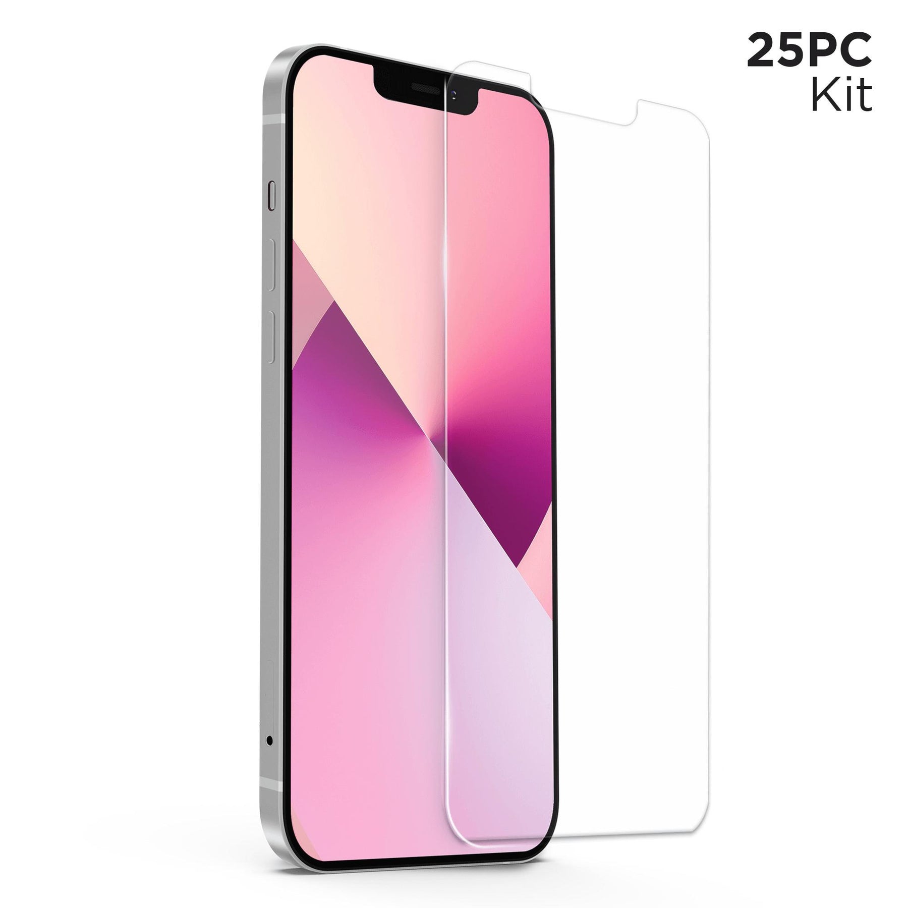 • 25pc Bundle Kit: 25 Screen Protectors, 25 Microfiber Cleaning Cloths, 25 Alcohol Wipes, 25 Dust Removers