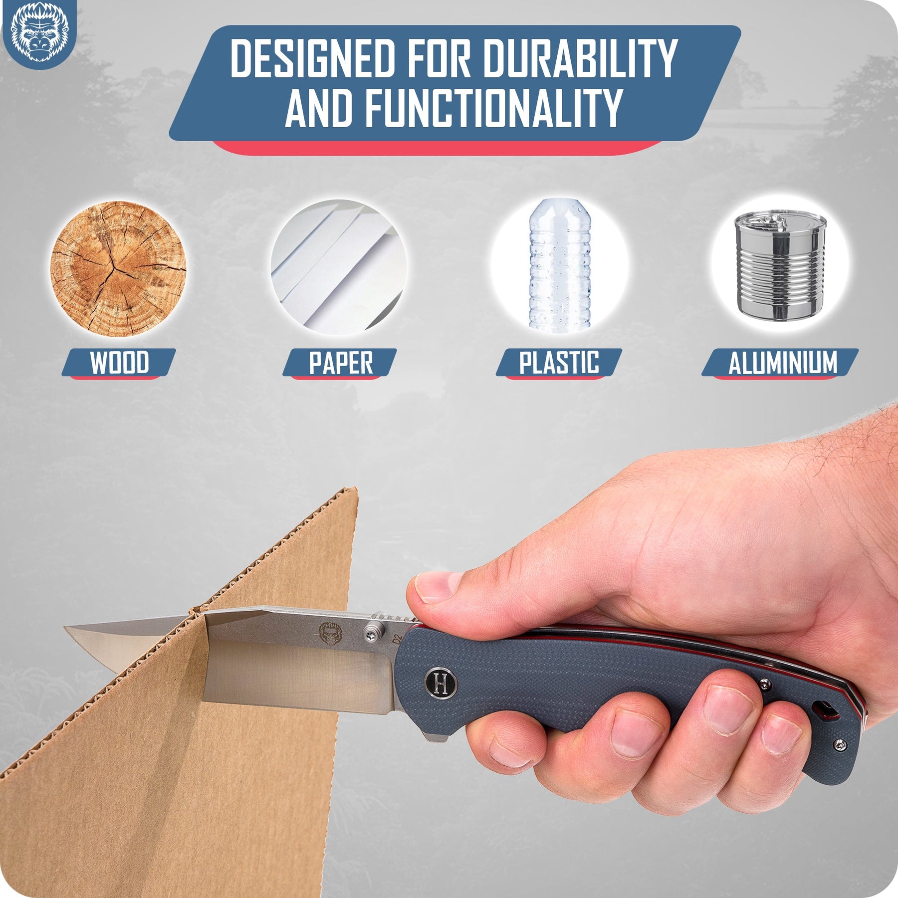 • G10 pocket knife handle is enhanced to provide Anti-slip & easy grip, it is designed for functionality.