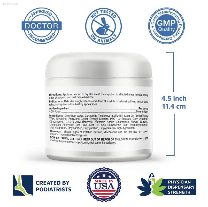 • Active Ingredient: Contains a potent 40% Urea concentration to deliver deep, lasting hydration and assist in softening even the roughest, most dehydrated areas of the skin.