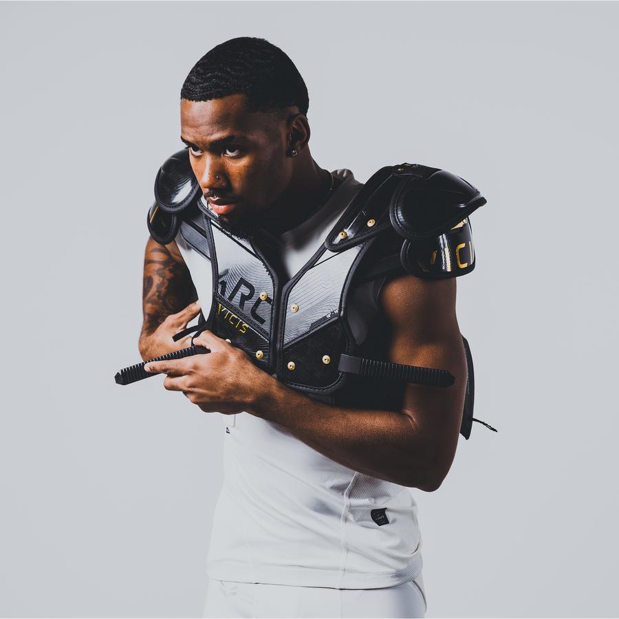 Meet the ARC_V1 Elite Shoulder Pads from VICIS—the trench-cut protection designed for OL, DL, DE, and those on the line. With CURV™ arch material and a fully customizable modular cushioning system, these pads deliver maximum protection and comfort—on the field and on the sidelines.